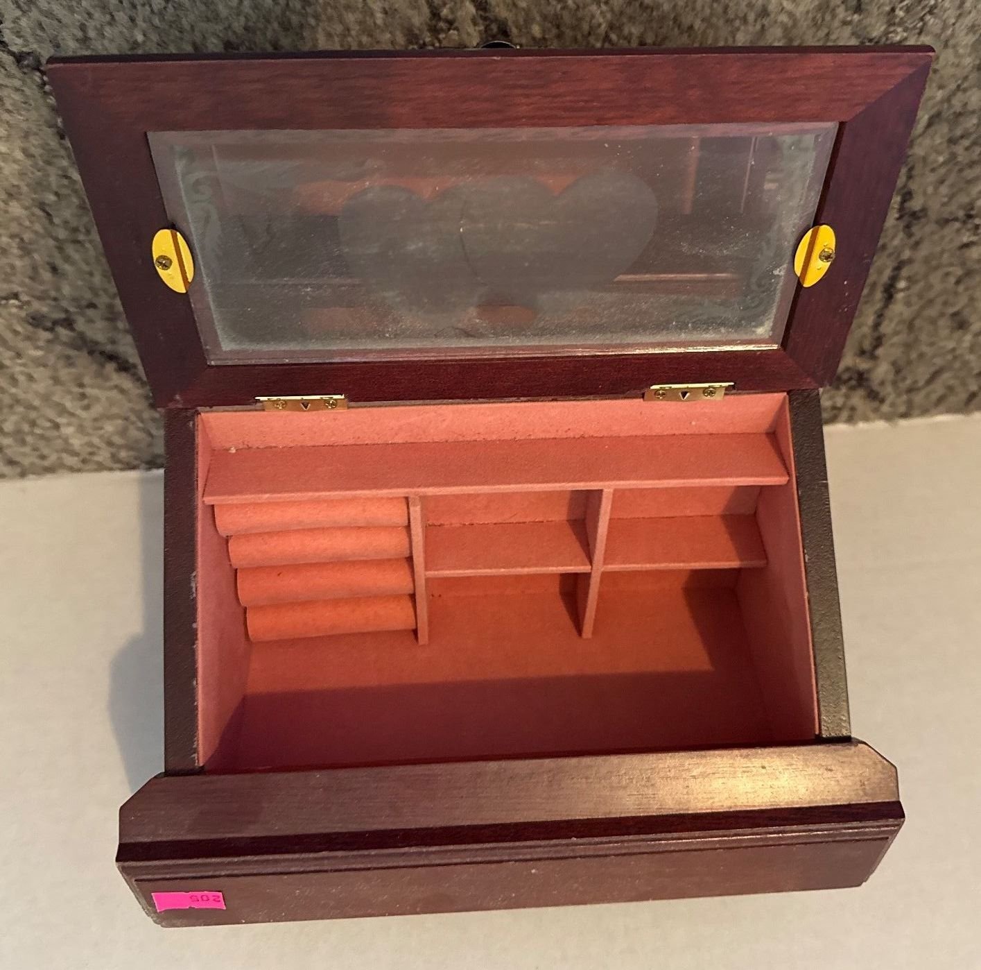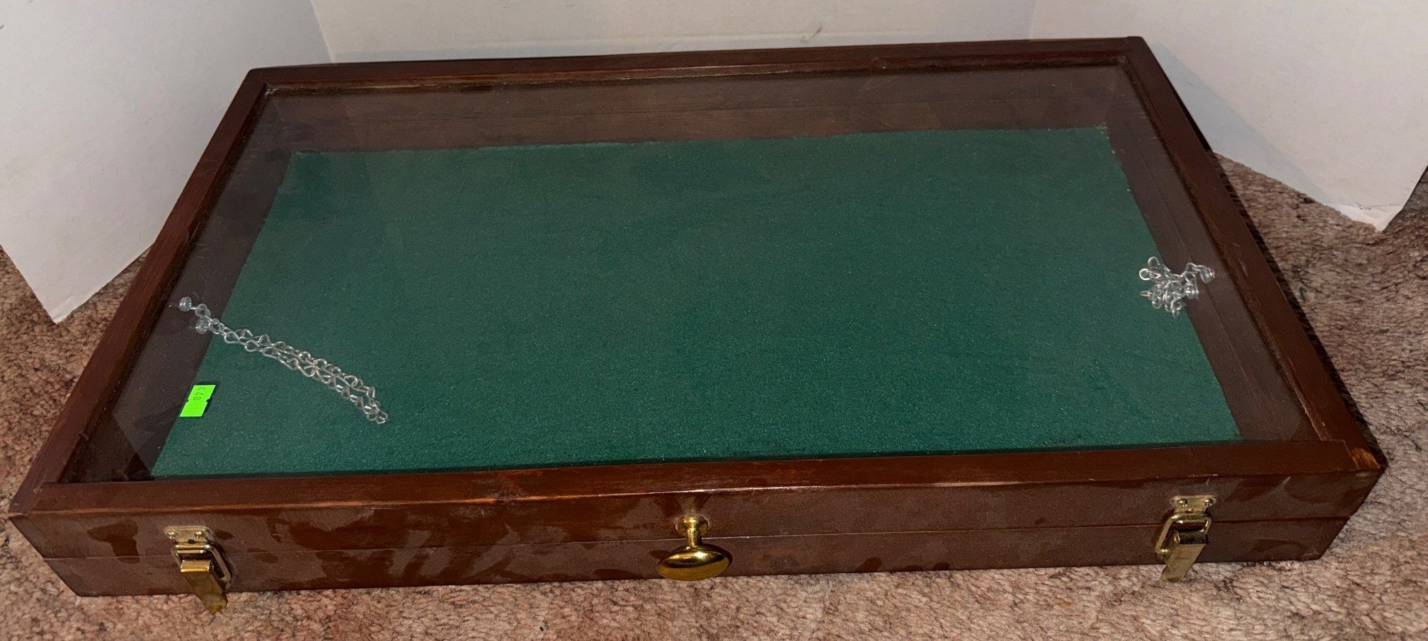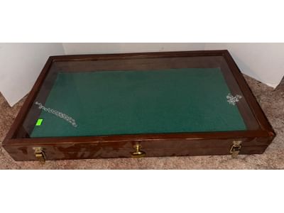448 Display Case With Glass Top and Green Felt Interior, 27”x3.5”x15”
