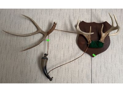 511 Mounted Antlers with Powder Horn and Plaque