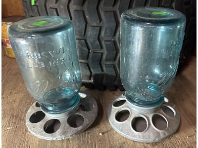 601 Ball Mason Jar Poultry Feeders with Metal Bases, Approx. 12”