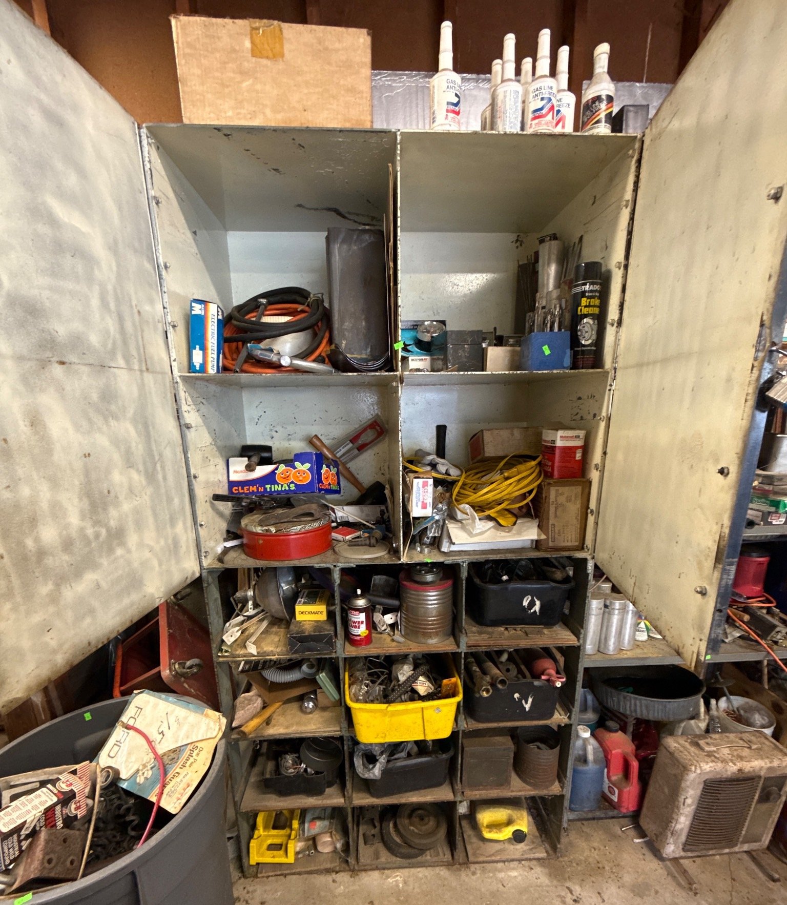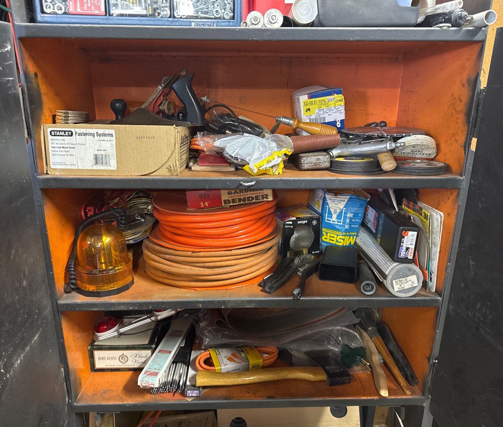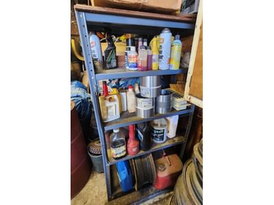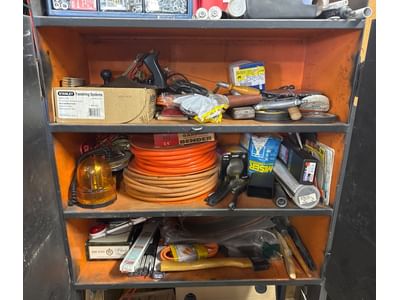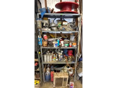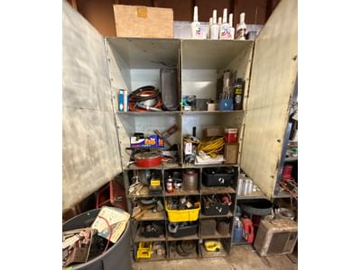 70 Metal Shelf With Contents, Inc. Tools, Hardware, and Fluids