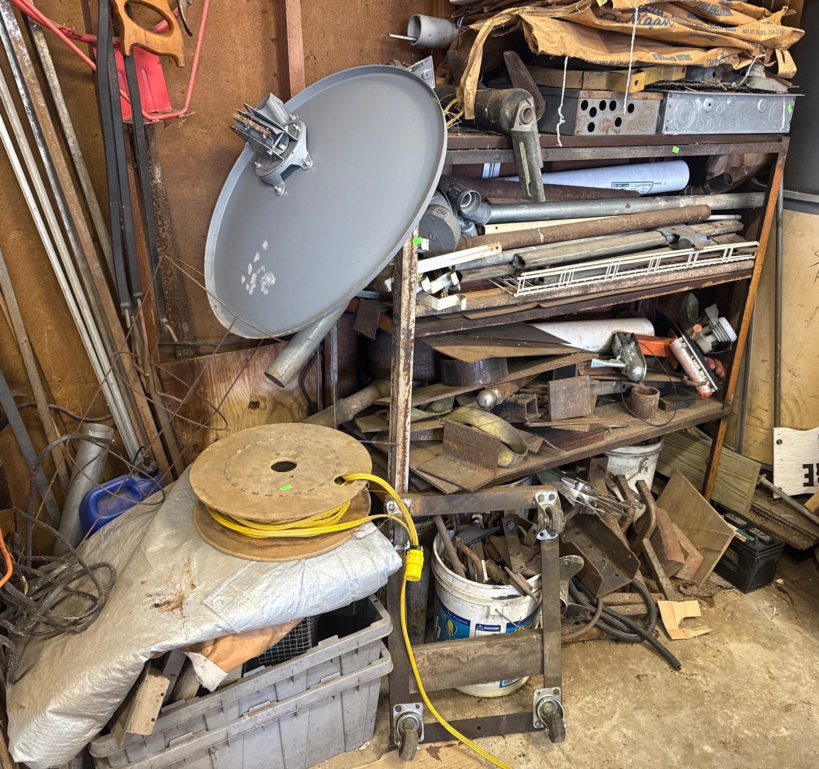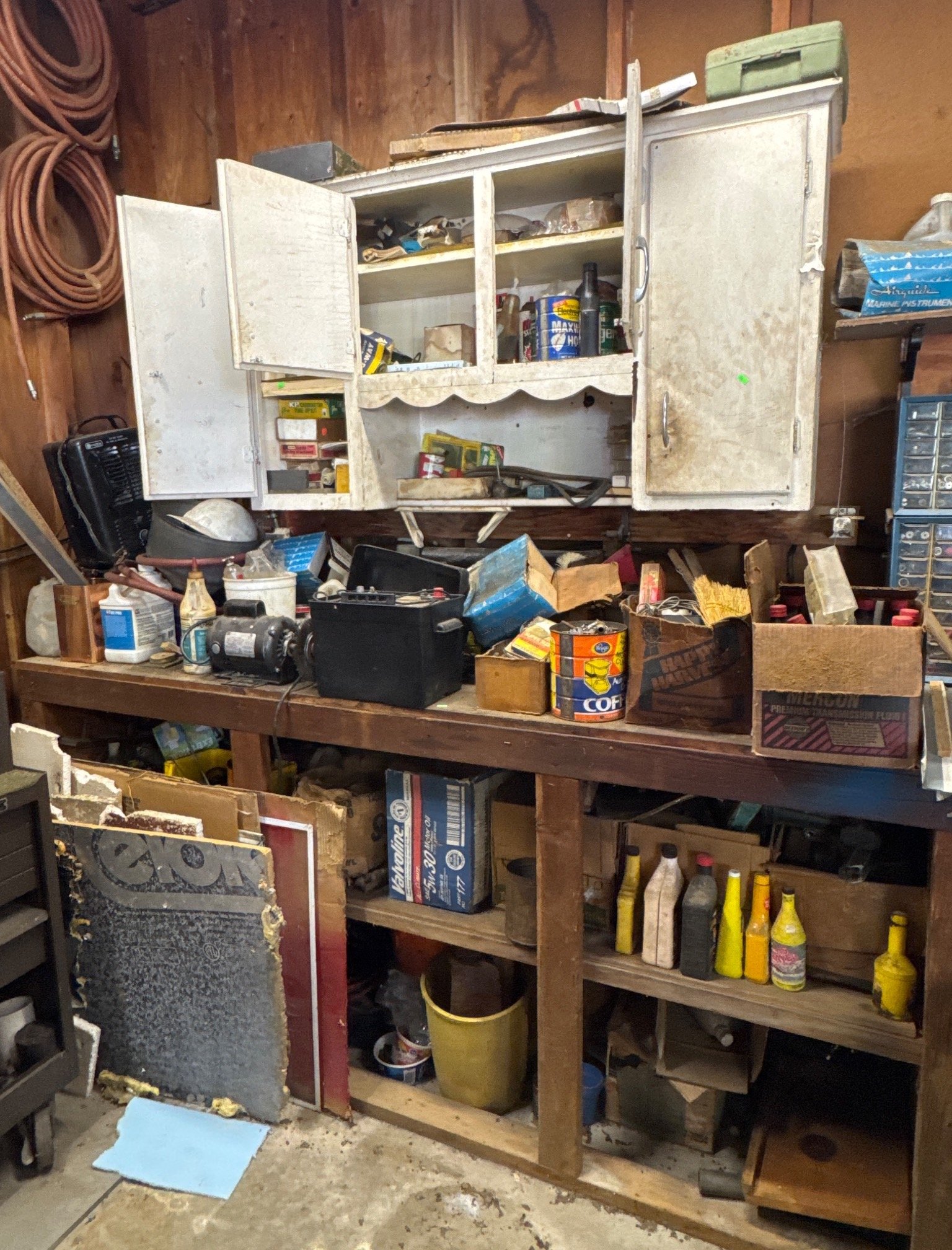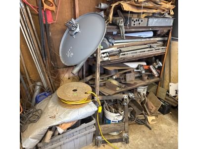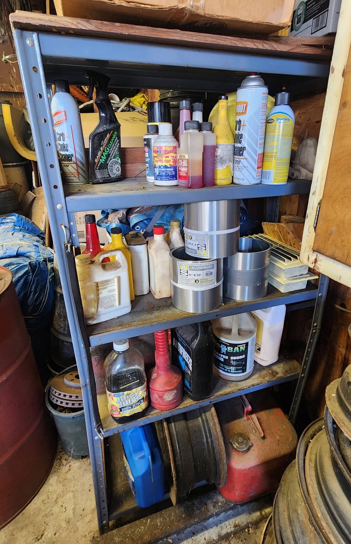 70 Metal Shelf With Contents, Inc. Tools, Hardware, and Fluids