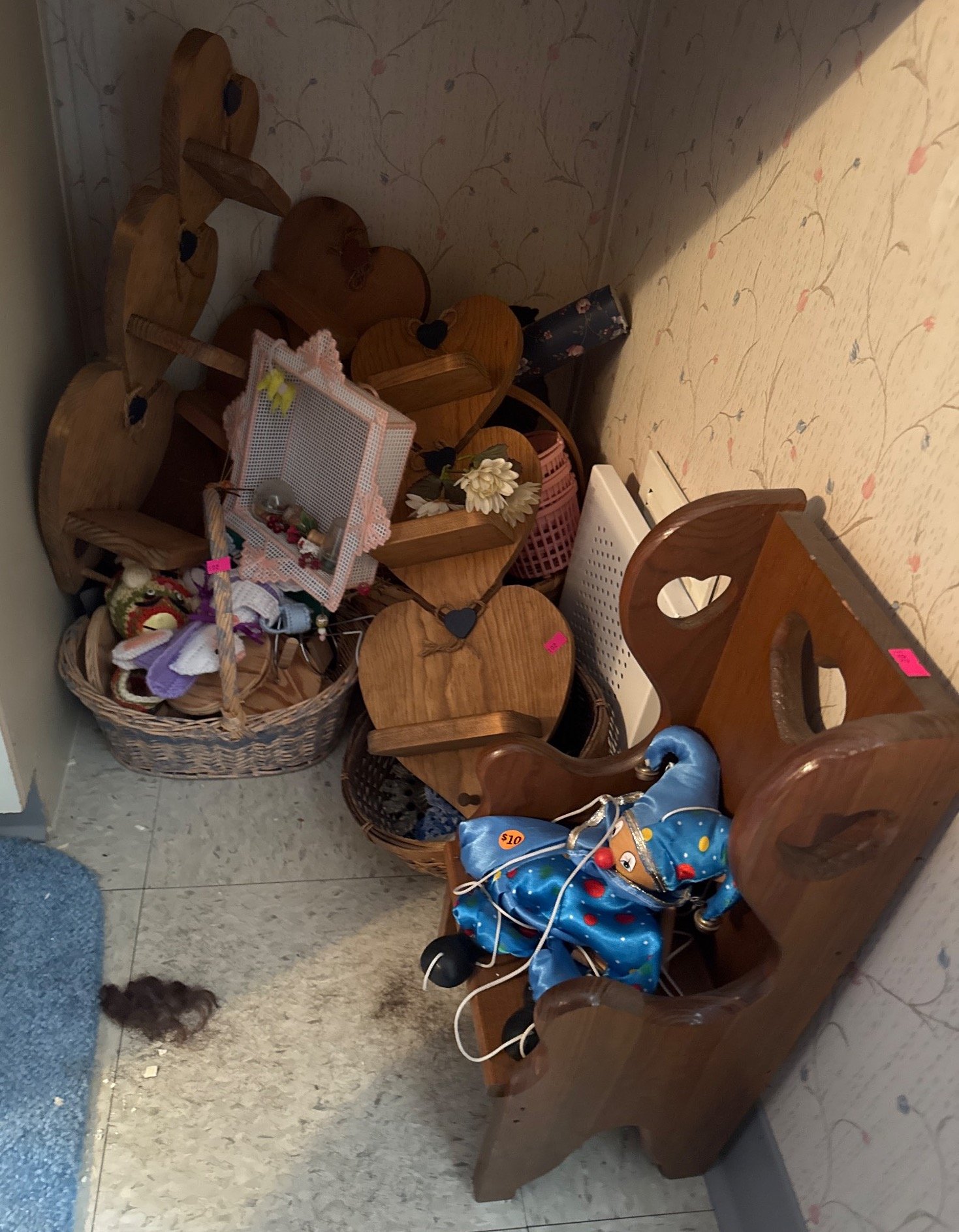 102 Heart-Cutout Wooden Shelves and Chairs with Assorted Decorative Items