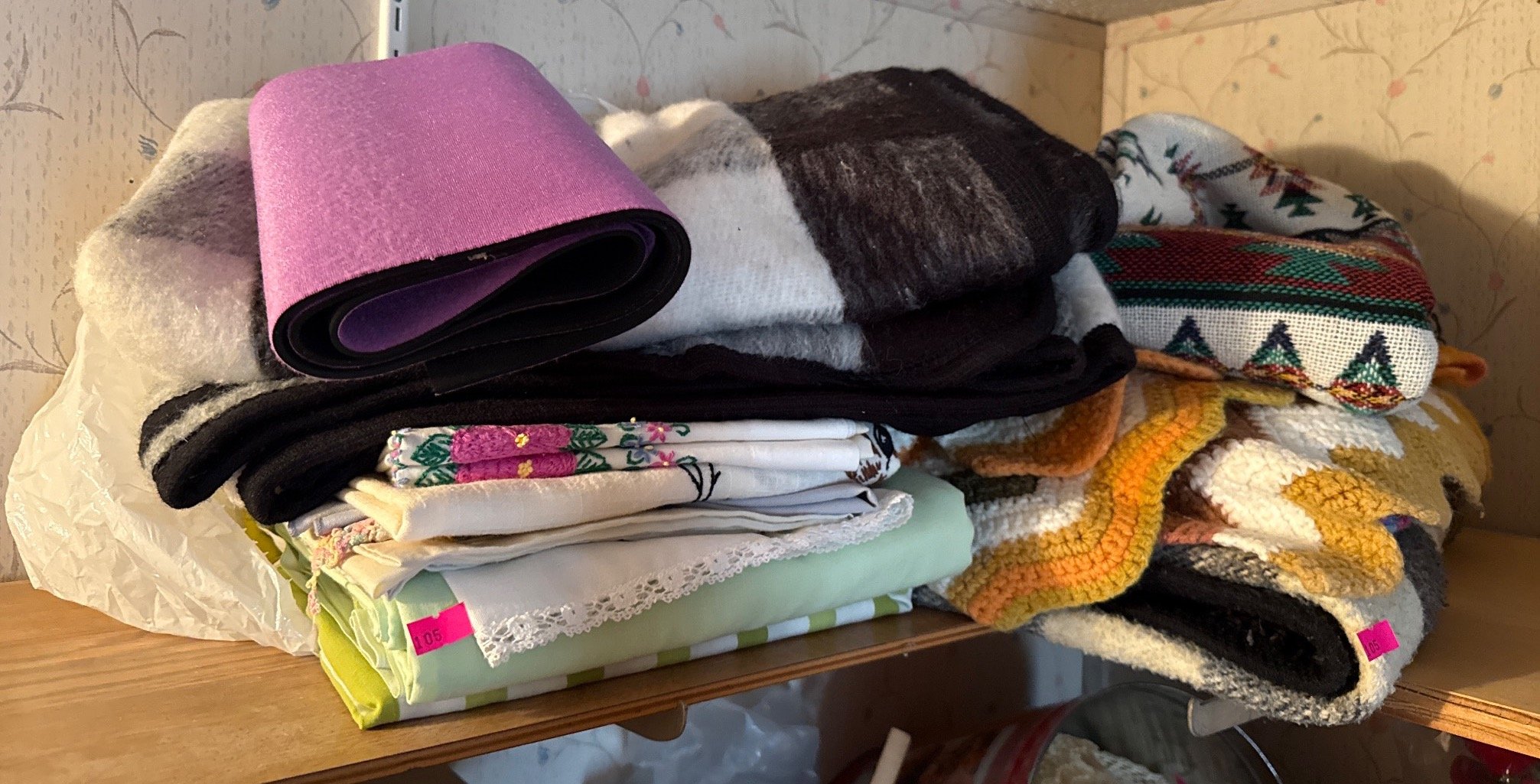 105 Textile Lot with Blankets, Throws, and Fabrics