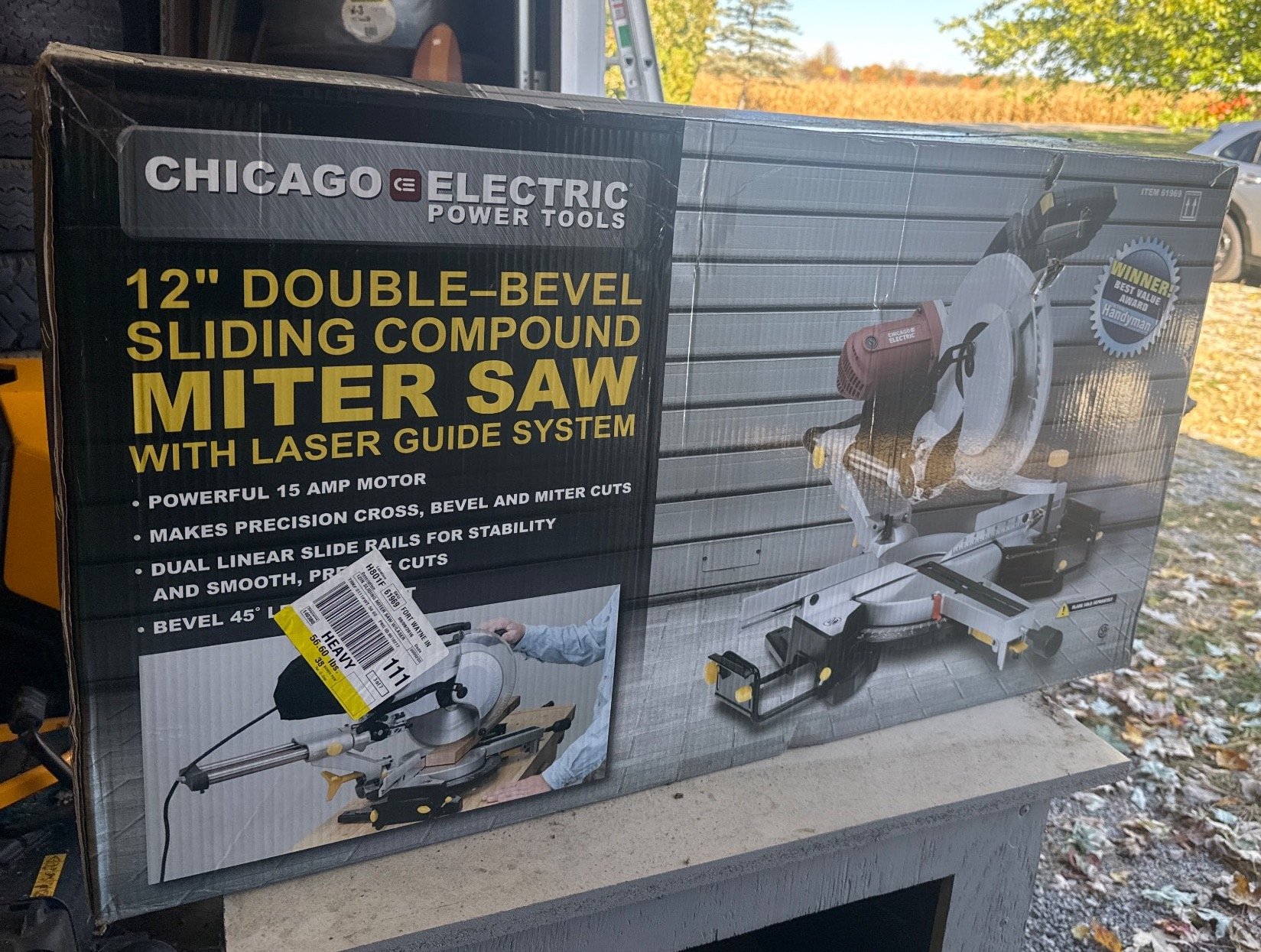 23 Chicago Electric Double-Bevel Sliding Compound Miter Saw with Laser Guide