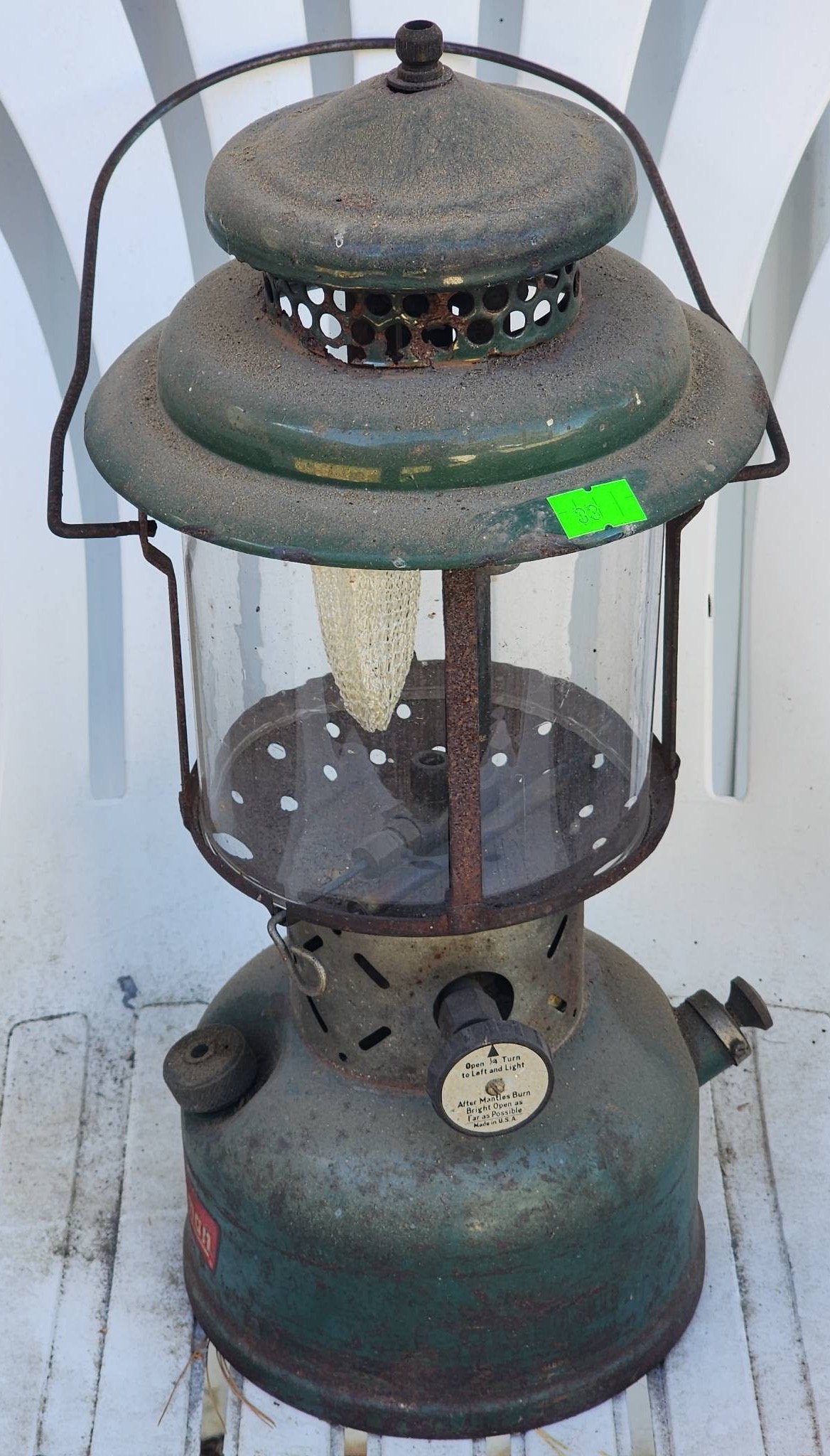 33 Coleman Kerosene Lantern with Green Metal Base