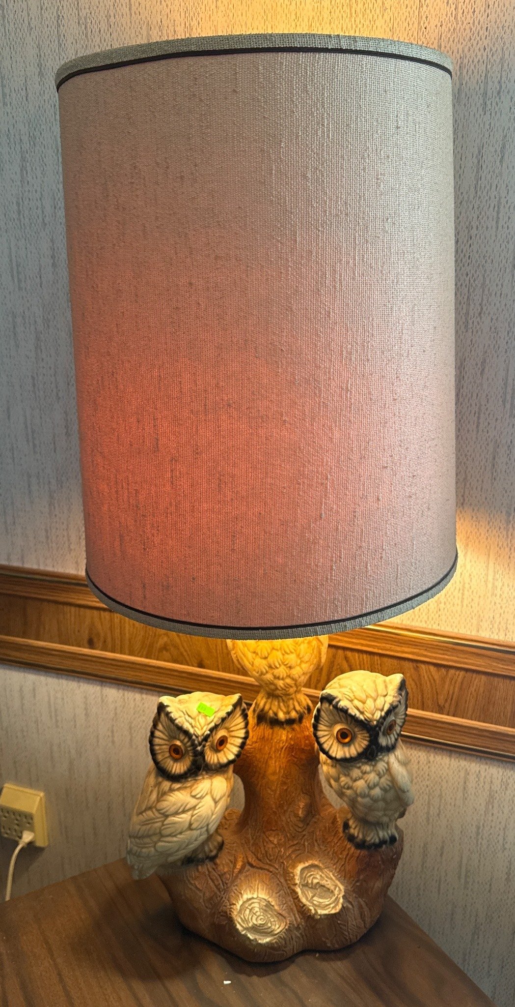 403 Table Lamp with Owl Motif Base and Cylindrical Shade, 39.5” Tall