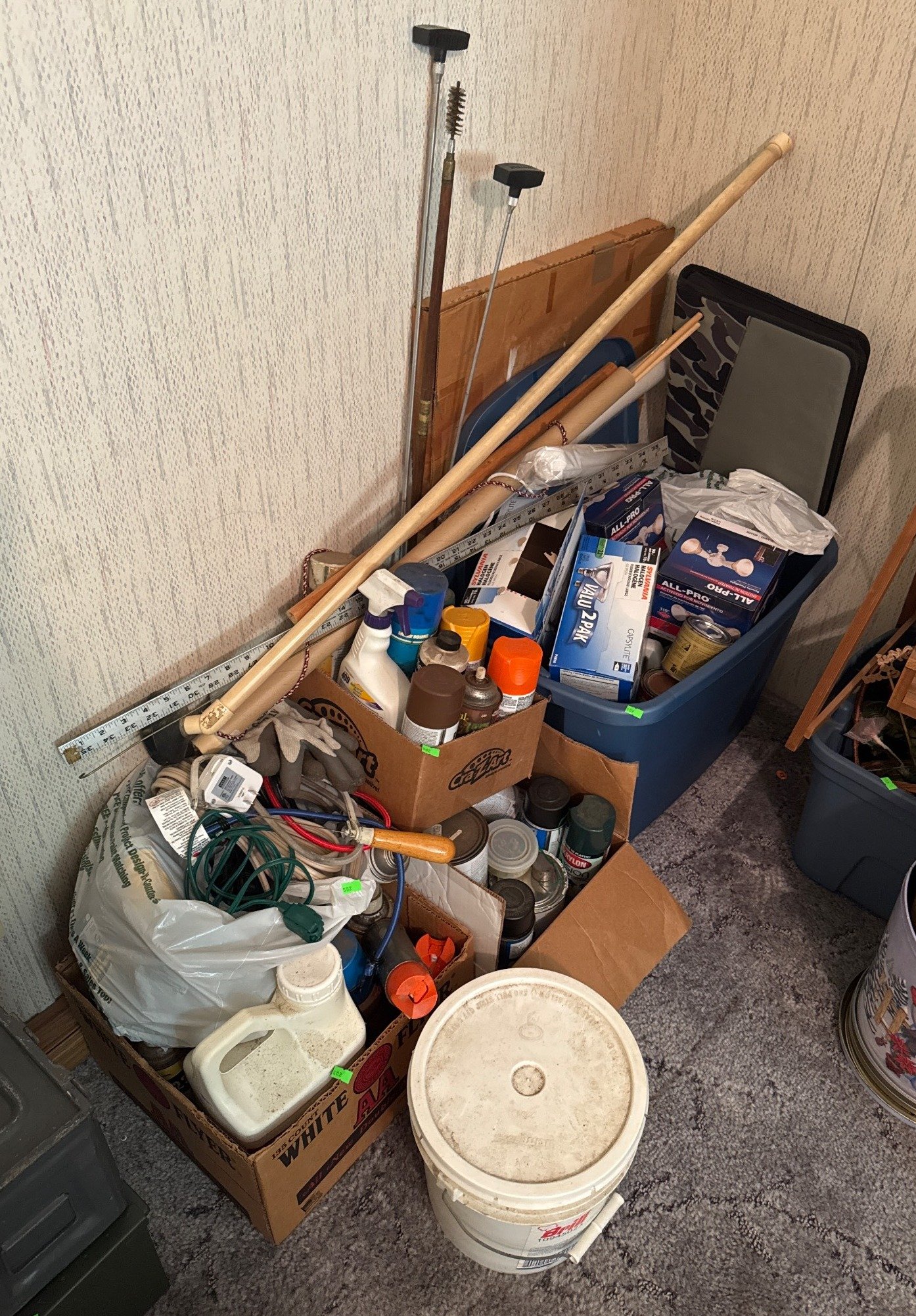 502 Household Supplies & Tools in Boxes and Bin Inc. Paints, Light Bulbs, Extension Cords