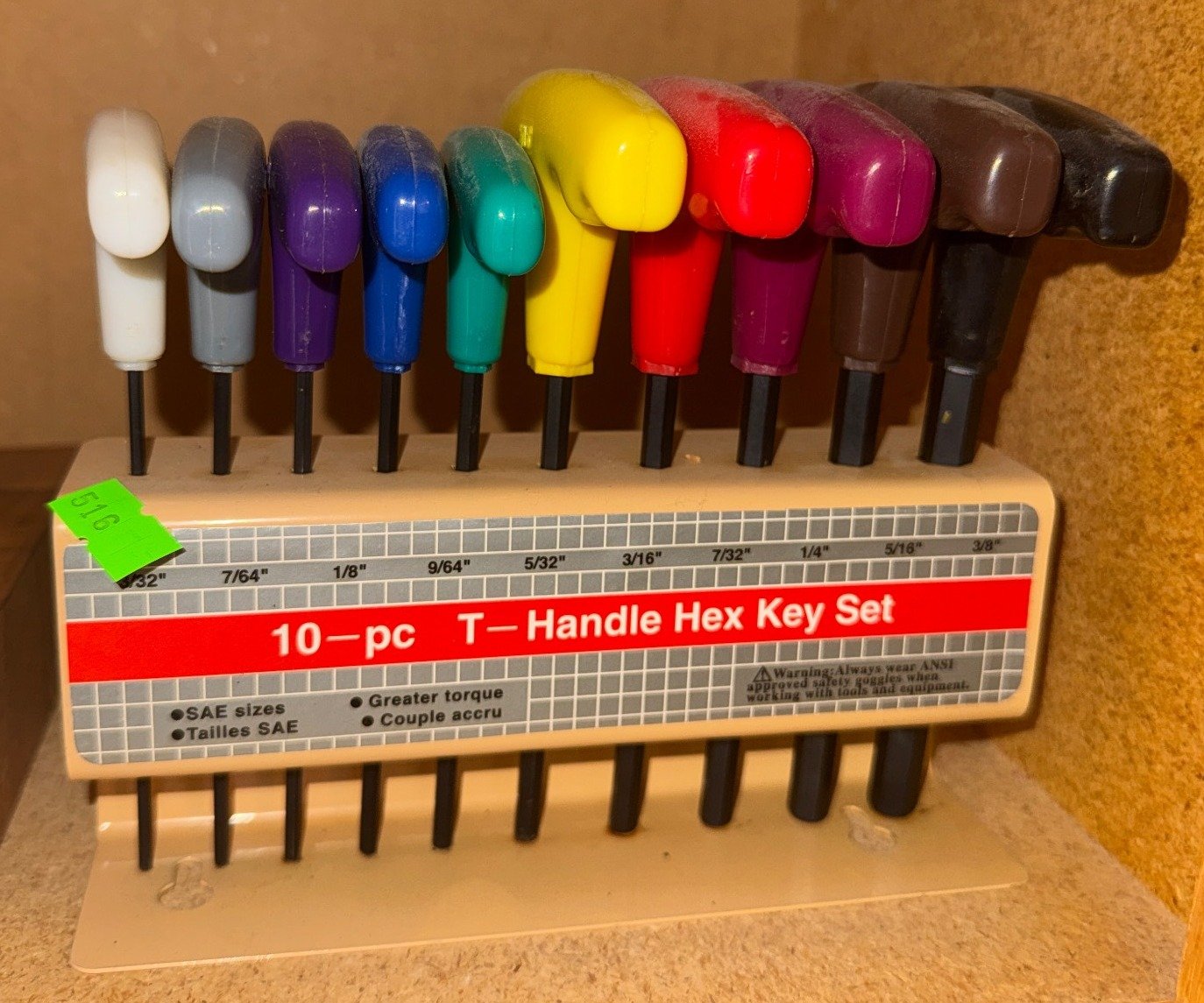 516 10-pc T-Handle Hex Key Set with SAE Sizes