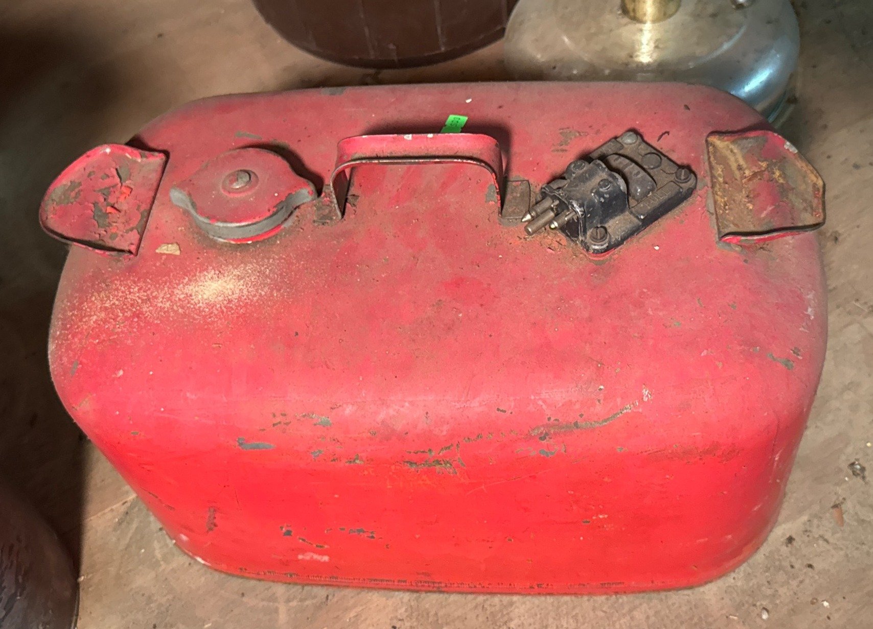 605 Red Metal Fuel Can with Dual Caps and Integrated Gauge