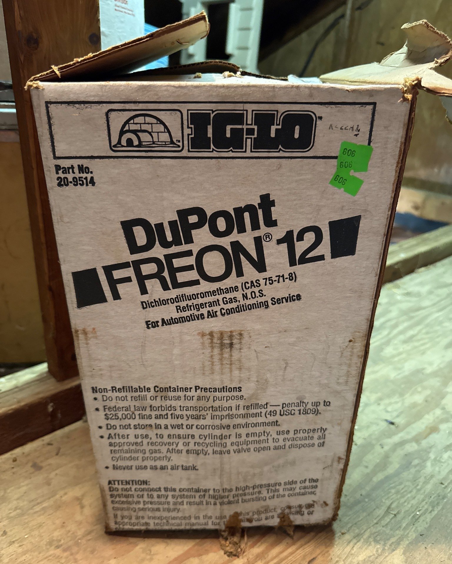 606 Iglo DuPont Freon-12 Refrigerant Gas (Unknown Contents)