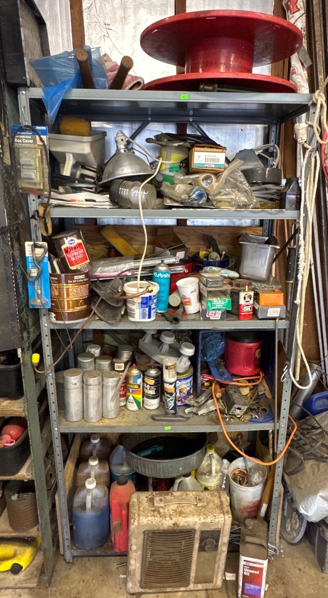 74 Metal Storage Shelf with Various Items