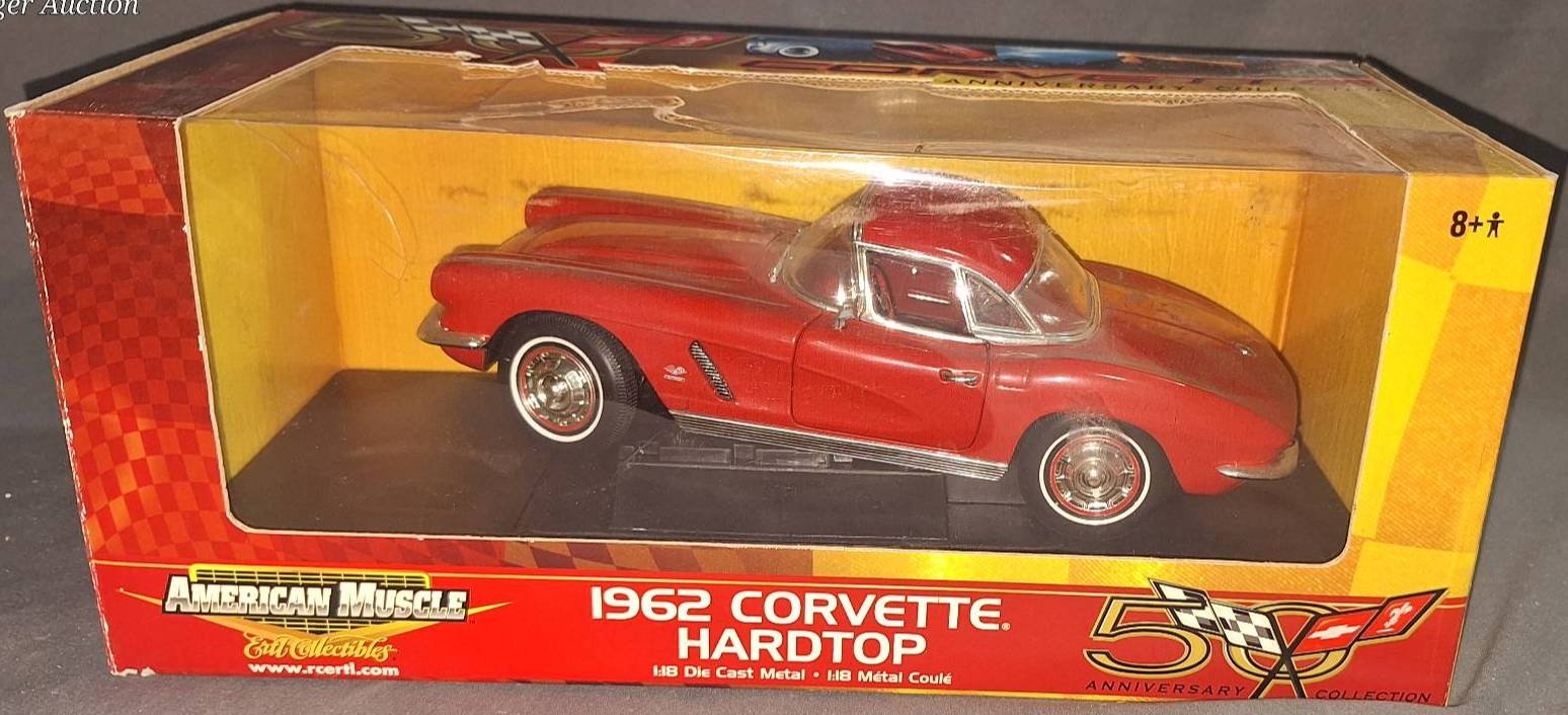 10024 American Muscle 1:18 Scale 1962 Corvette Hardtop Die-Cast Model, loose in box, plastic broke