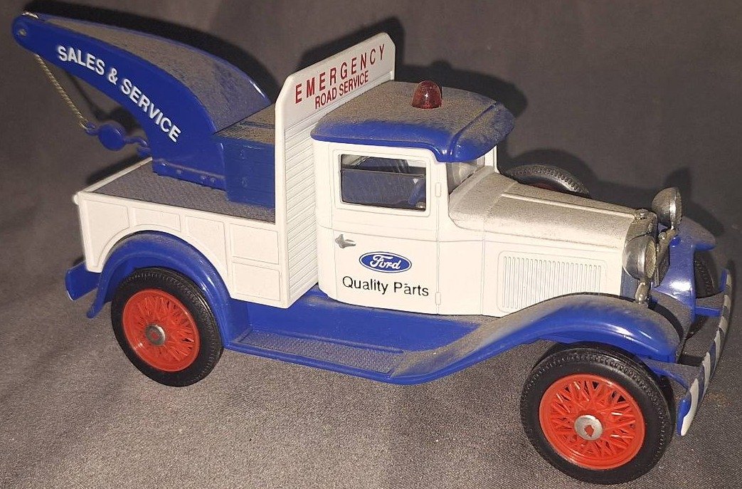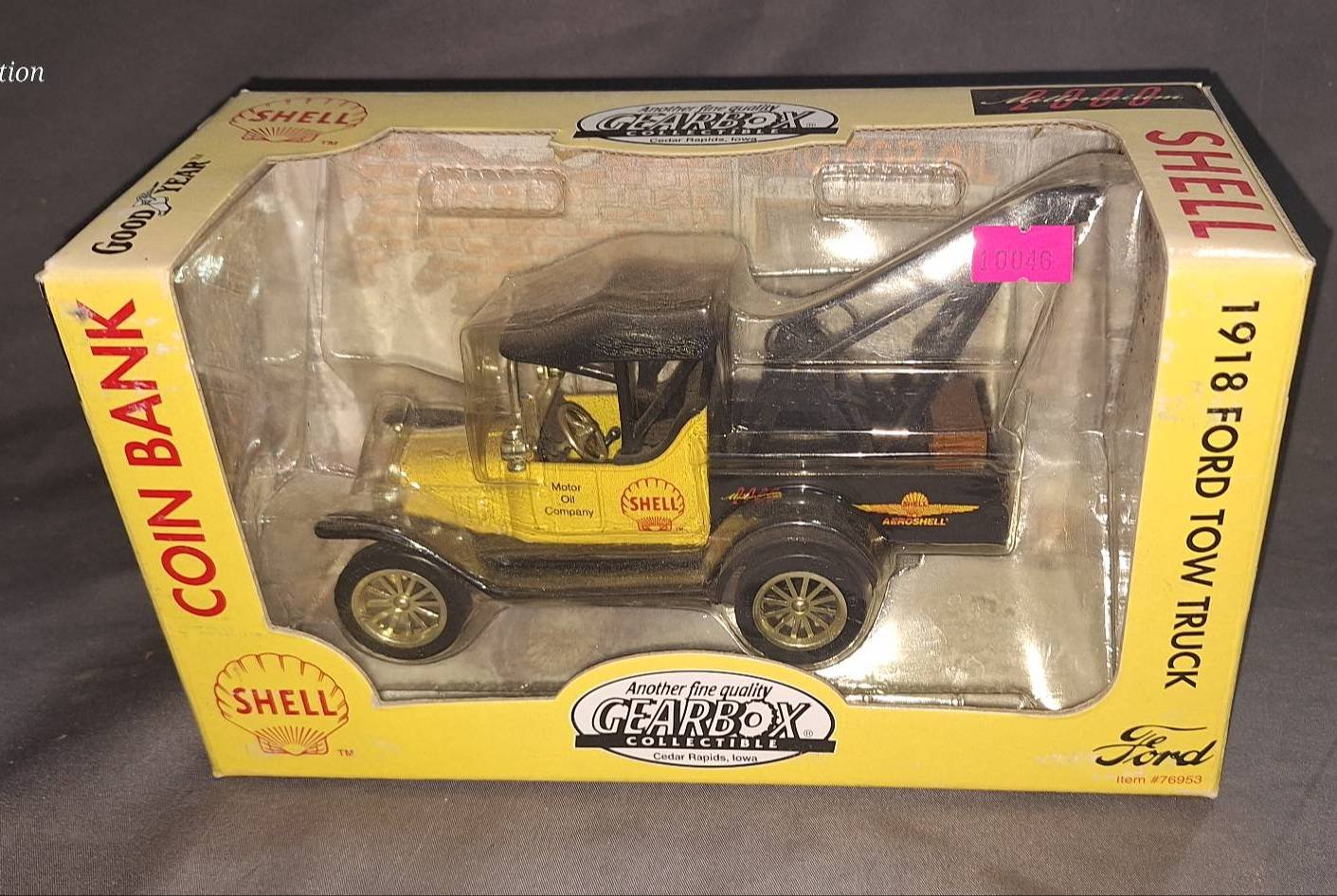 10046 1918 Ford Tow Truck Coin Bank with Shell Branding in Original Packaging