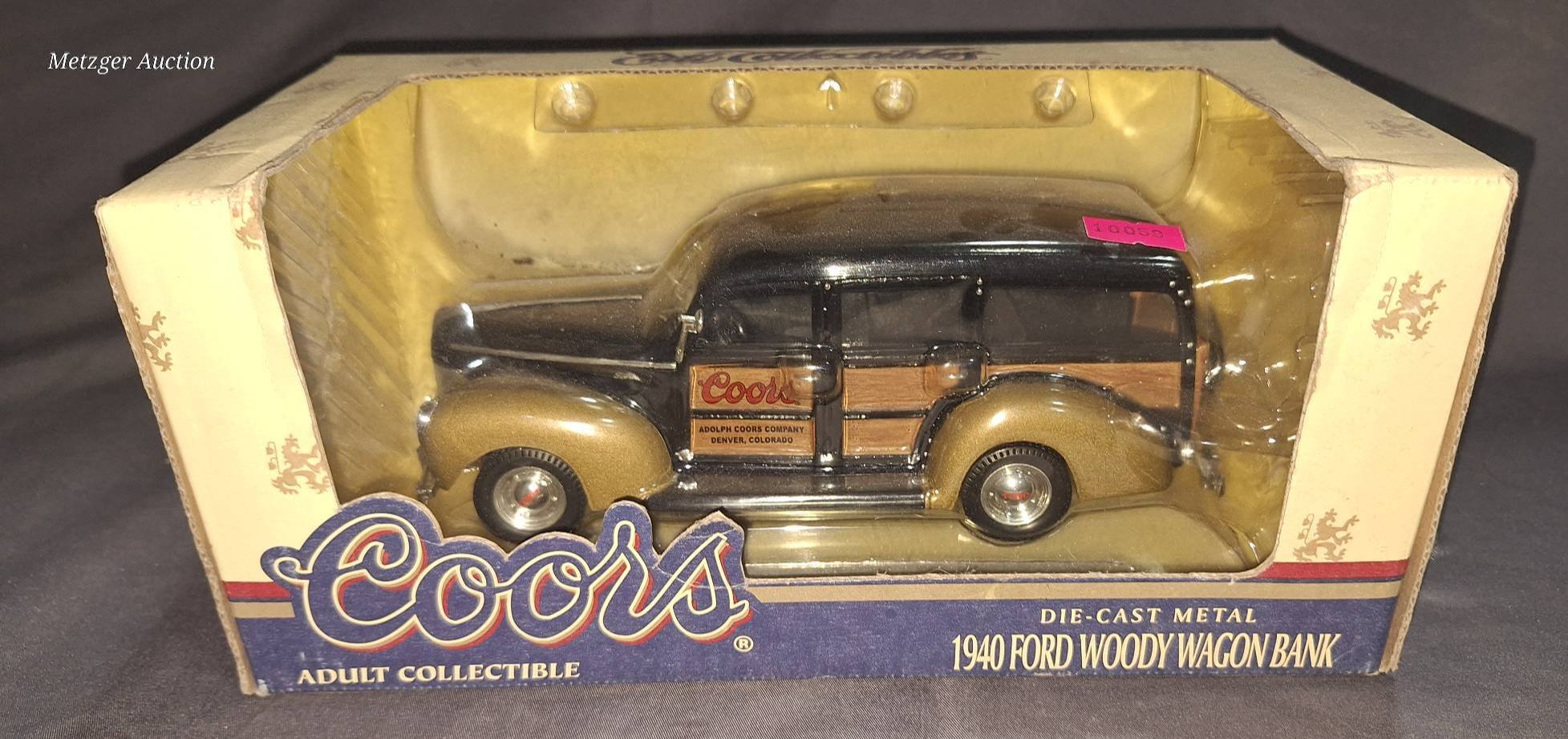 10059 Coors Die-Cast Metal 1940 Ford Woody Wagon Bank in Original Packaging