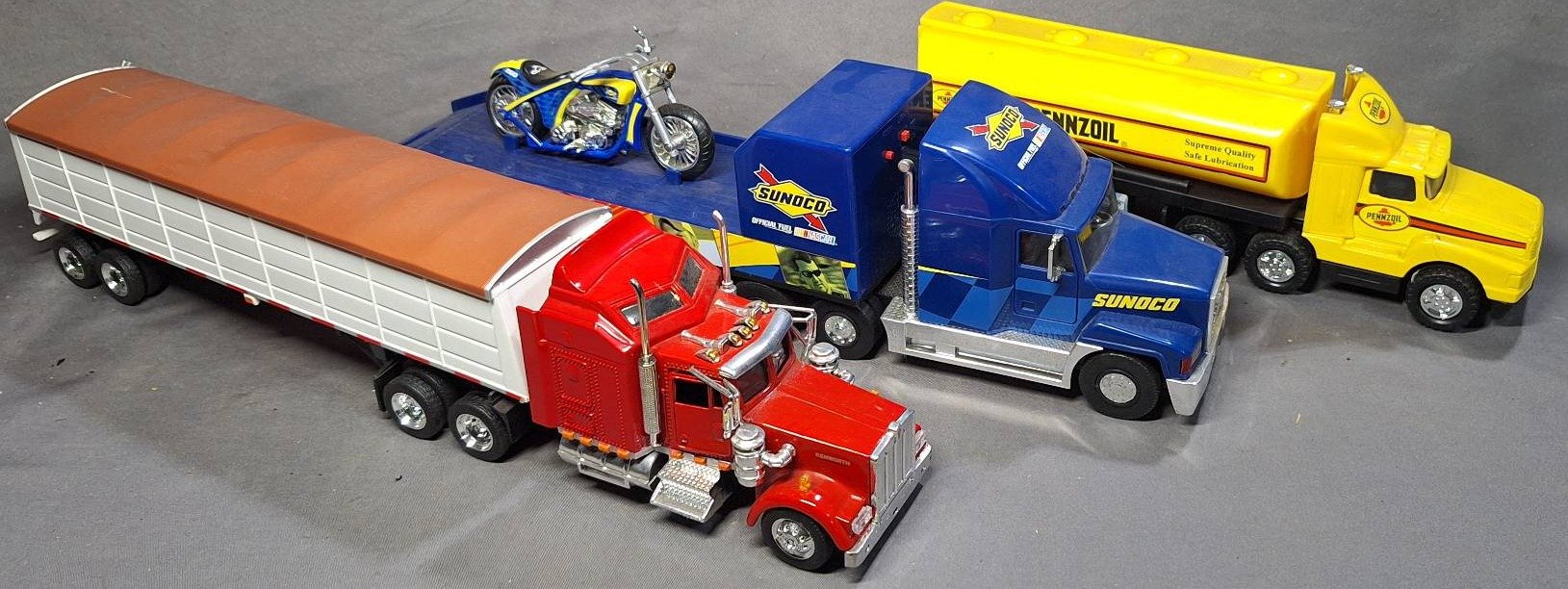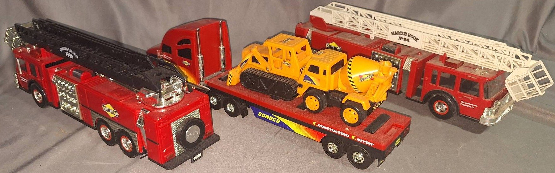 10626 Sunoco Plastic Toy Fire Trucks and Transport Truck with Construction Vehicles