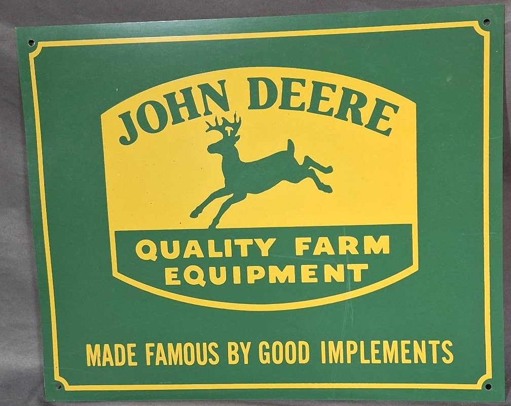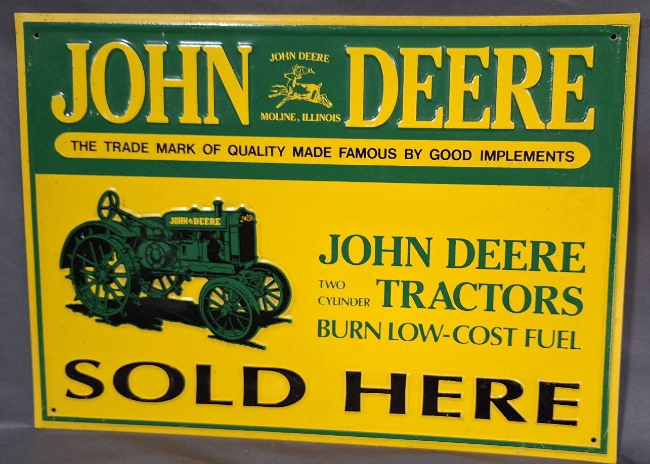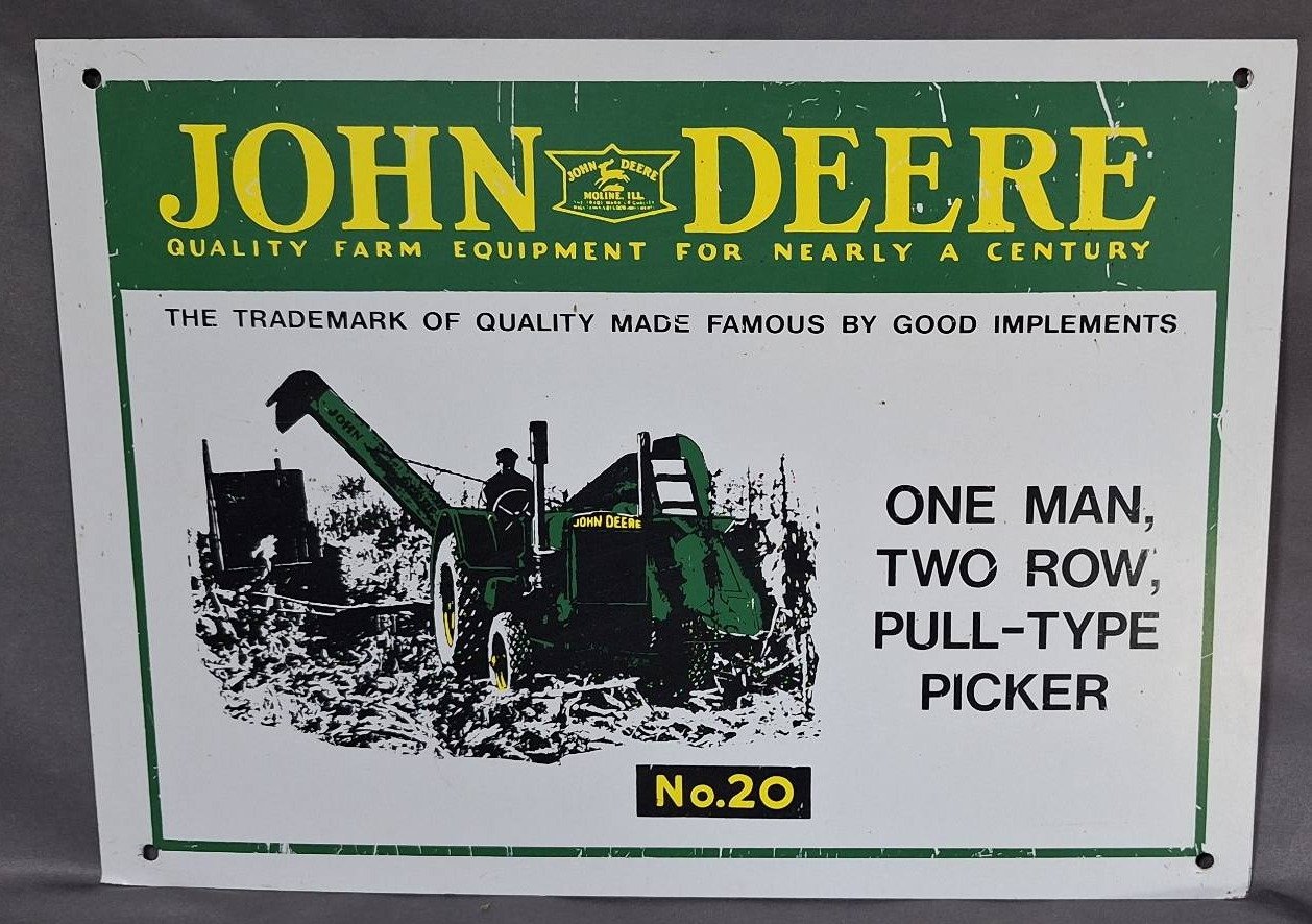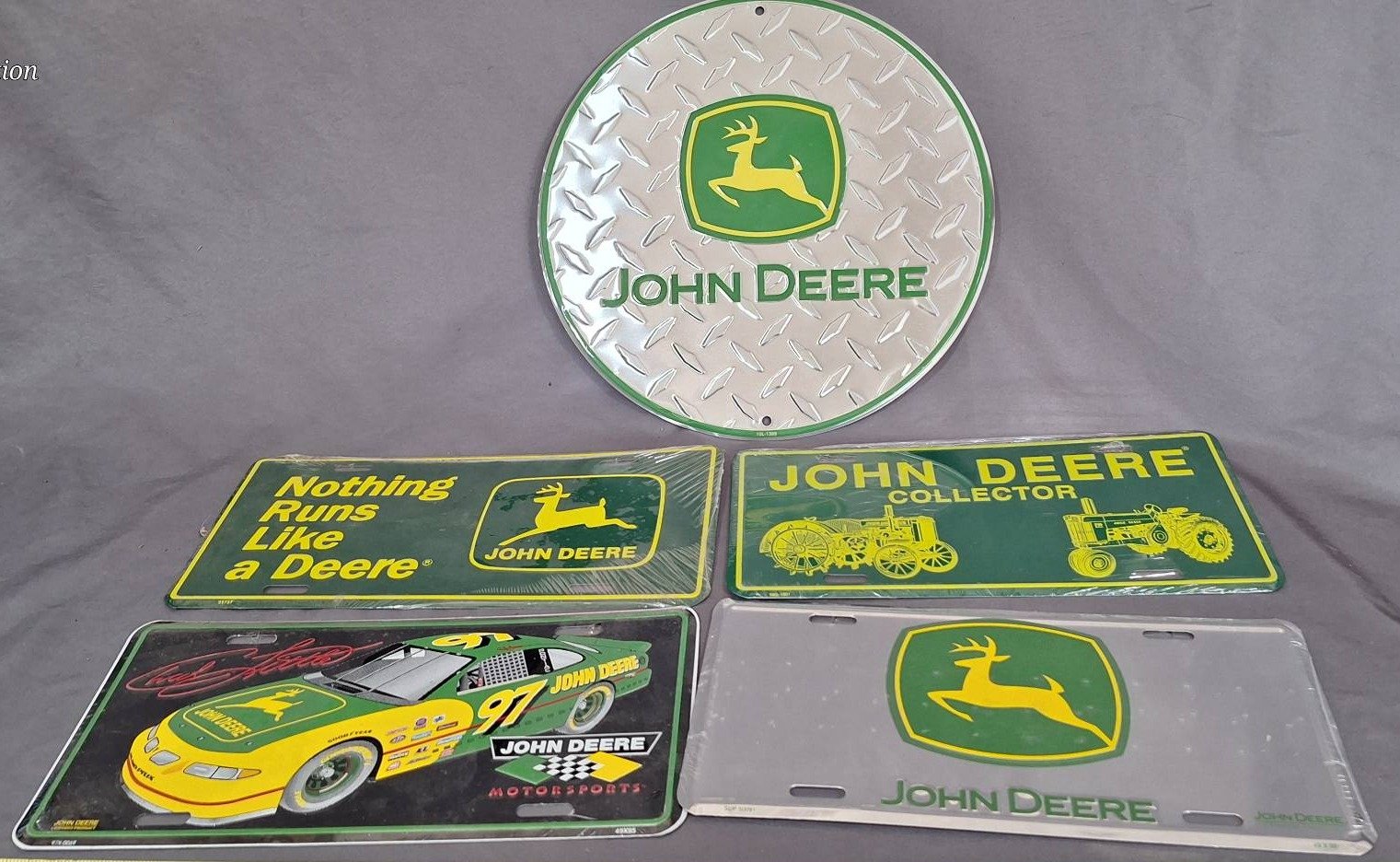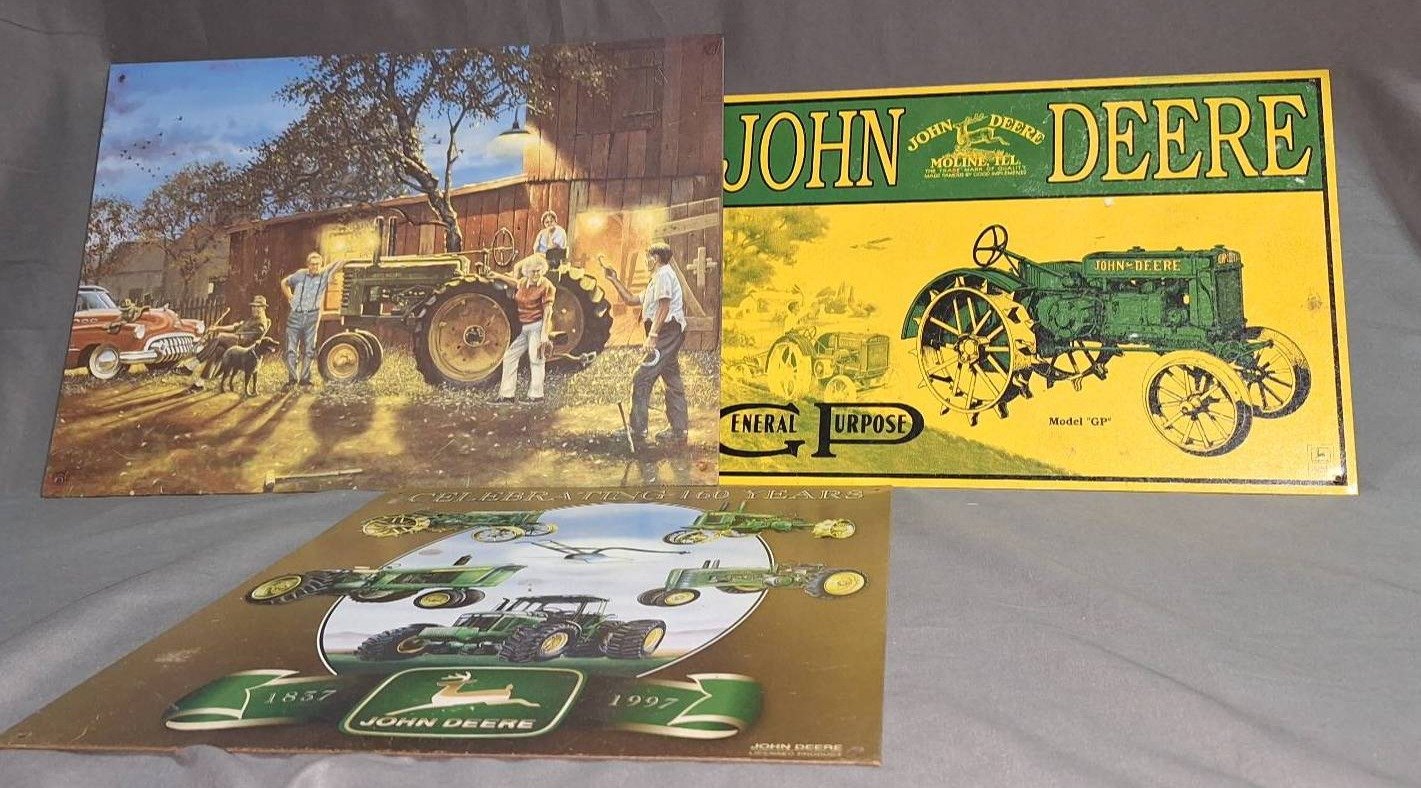 10668 John Deere Collectibles Including Tin Bucket, Thermos, Lamp, and Advertising Cards