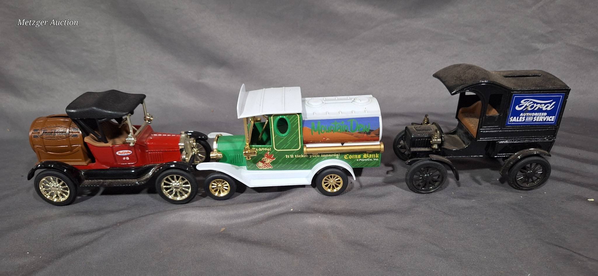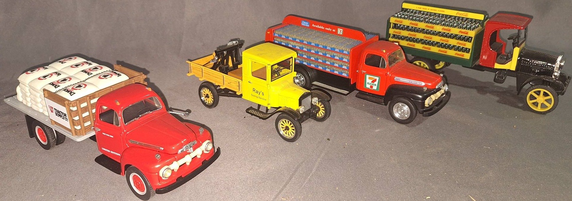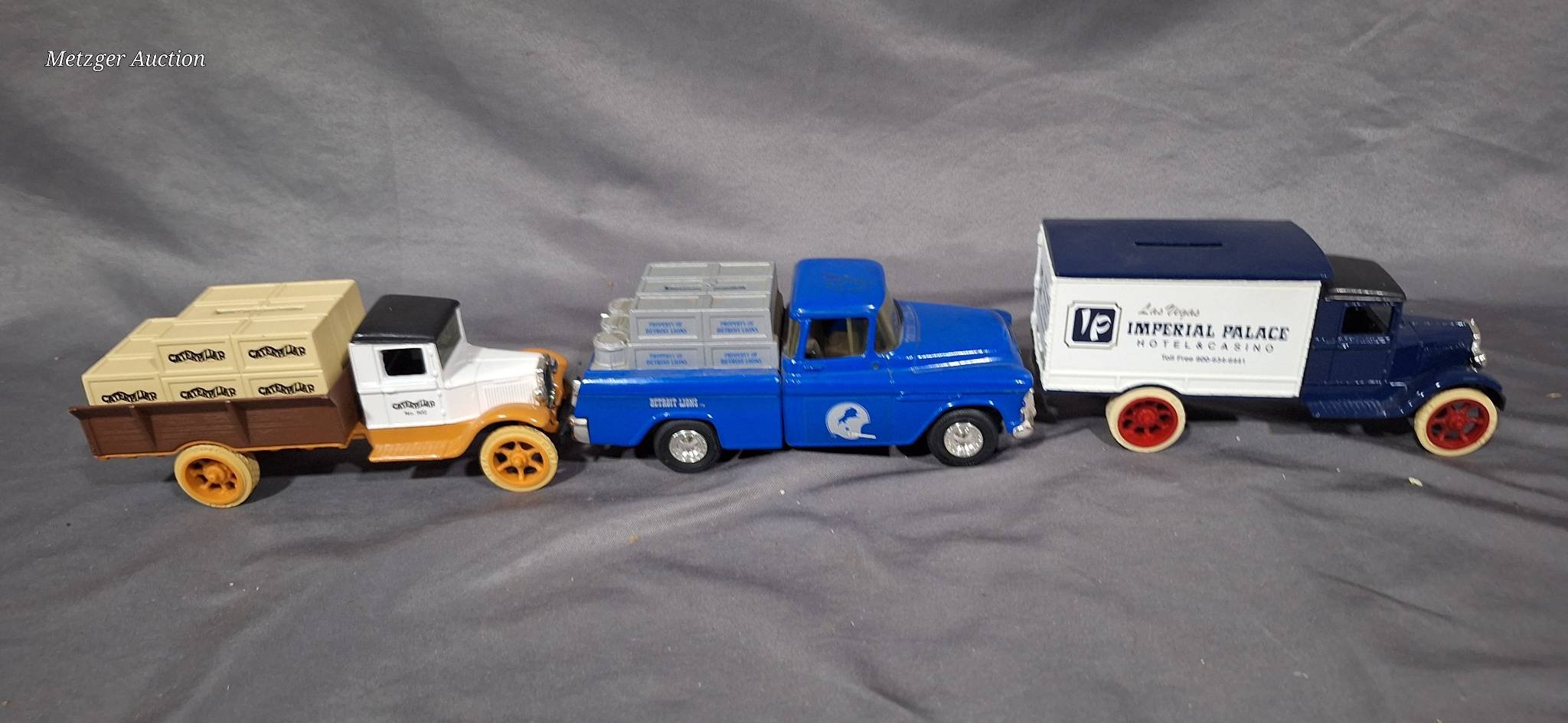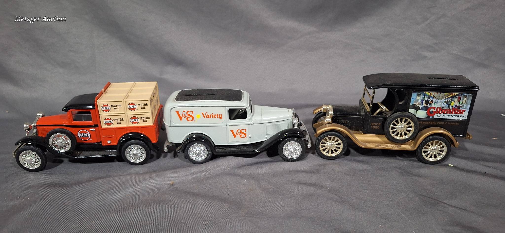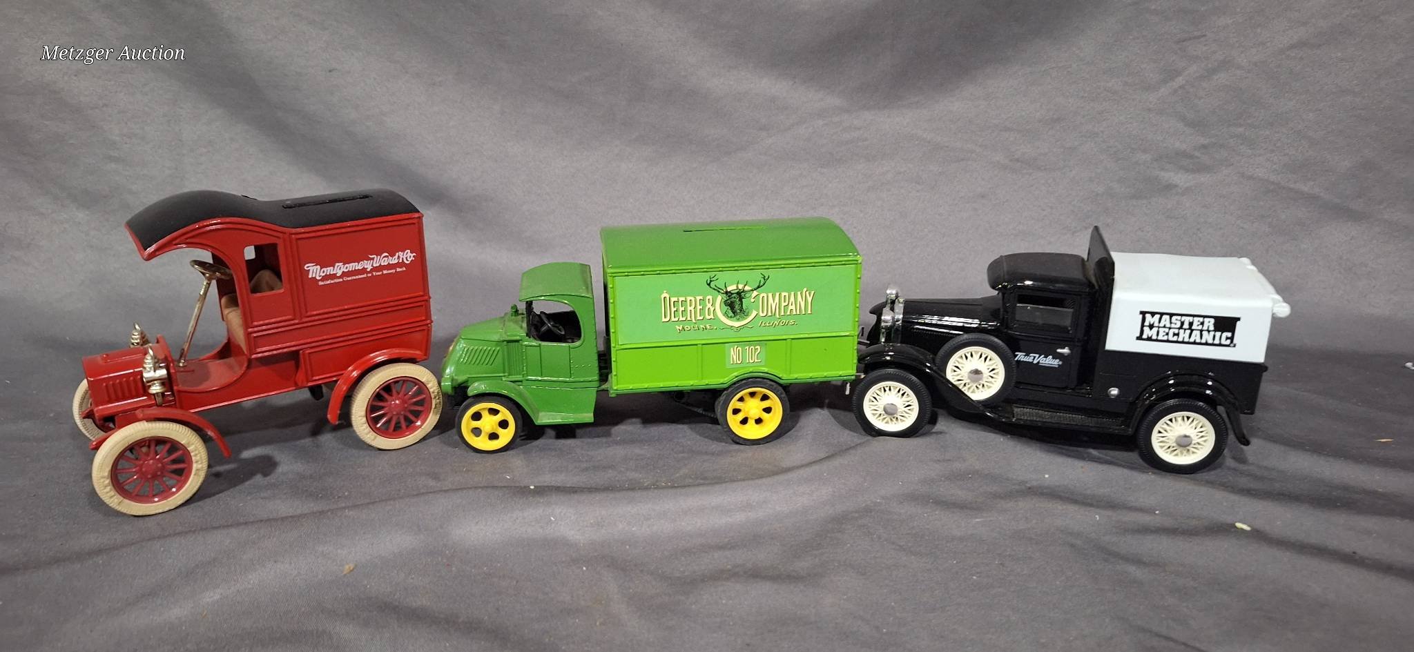10688 Truck and Trolley Banks Collection with John Deere and Coffee Truck Models