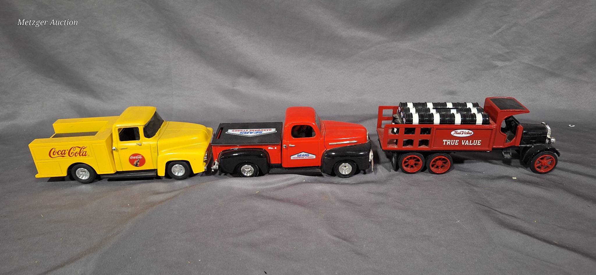 10636 4 Die-Cast Model Trucks banks , Inc. 7-Eleven and Coca-Cola Logos