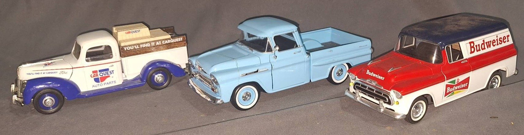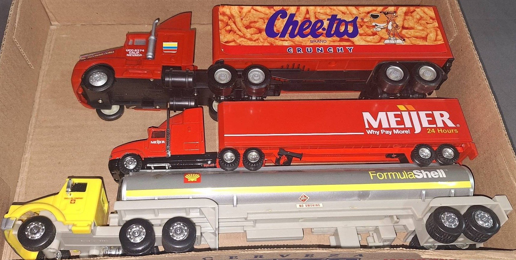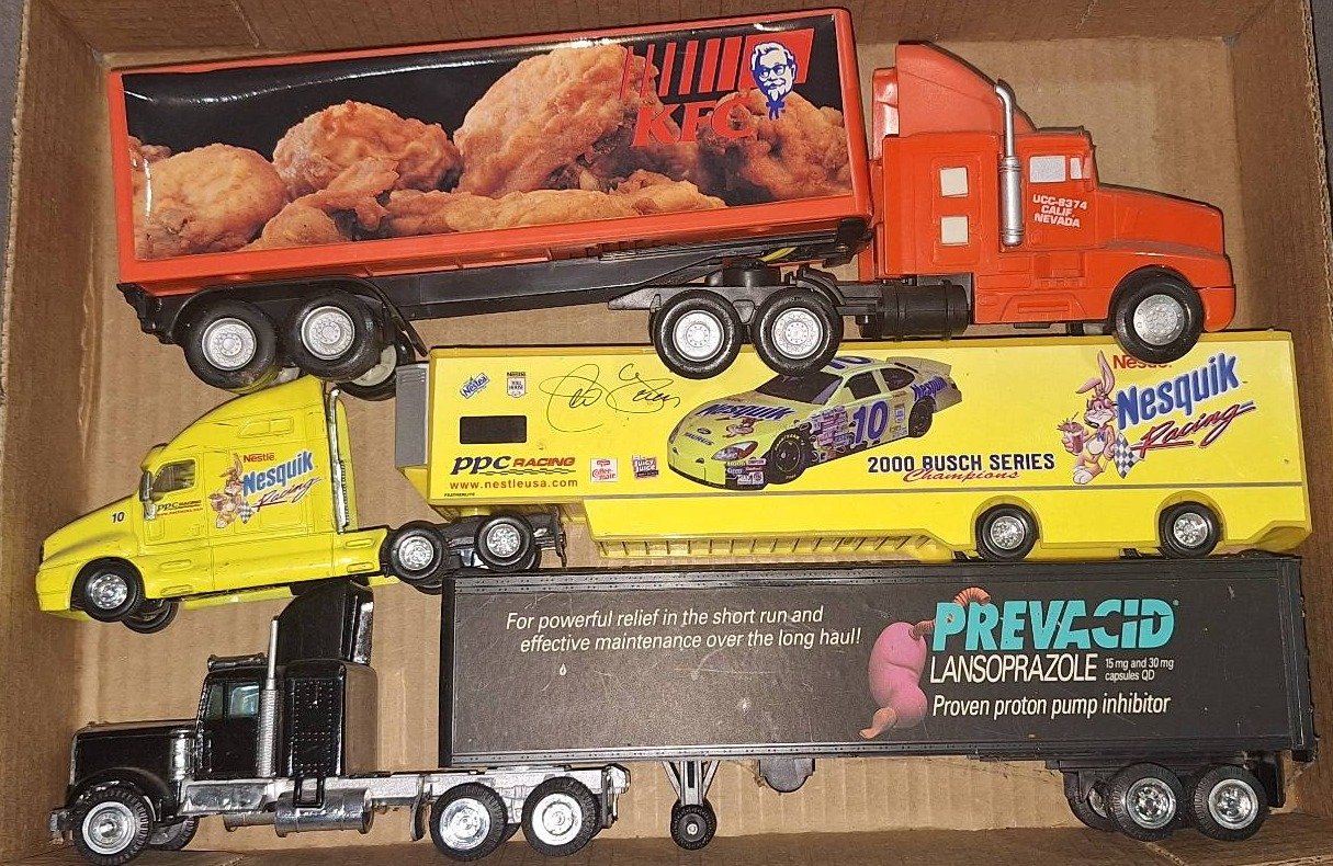 10621 Small-Scale Plastic and Die-Cast Trucks with Advertising Graphics