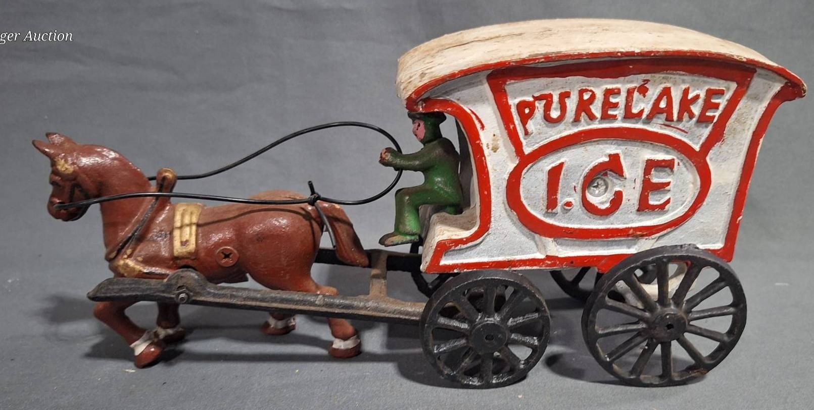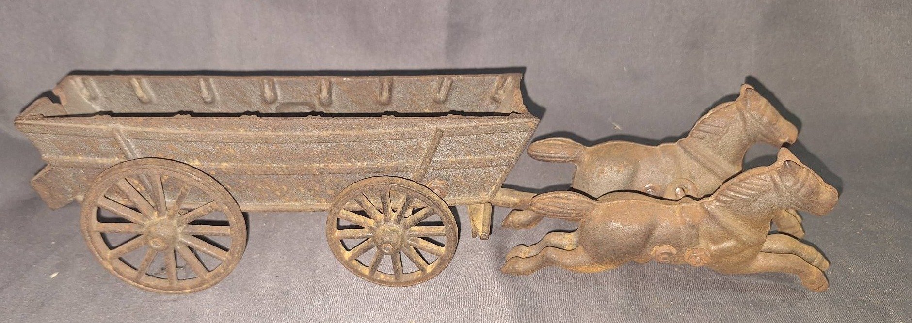 10667 Cast Iron Horse-Drawn Wagon Toy with Two Horses