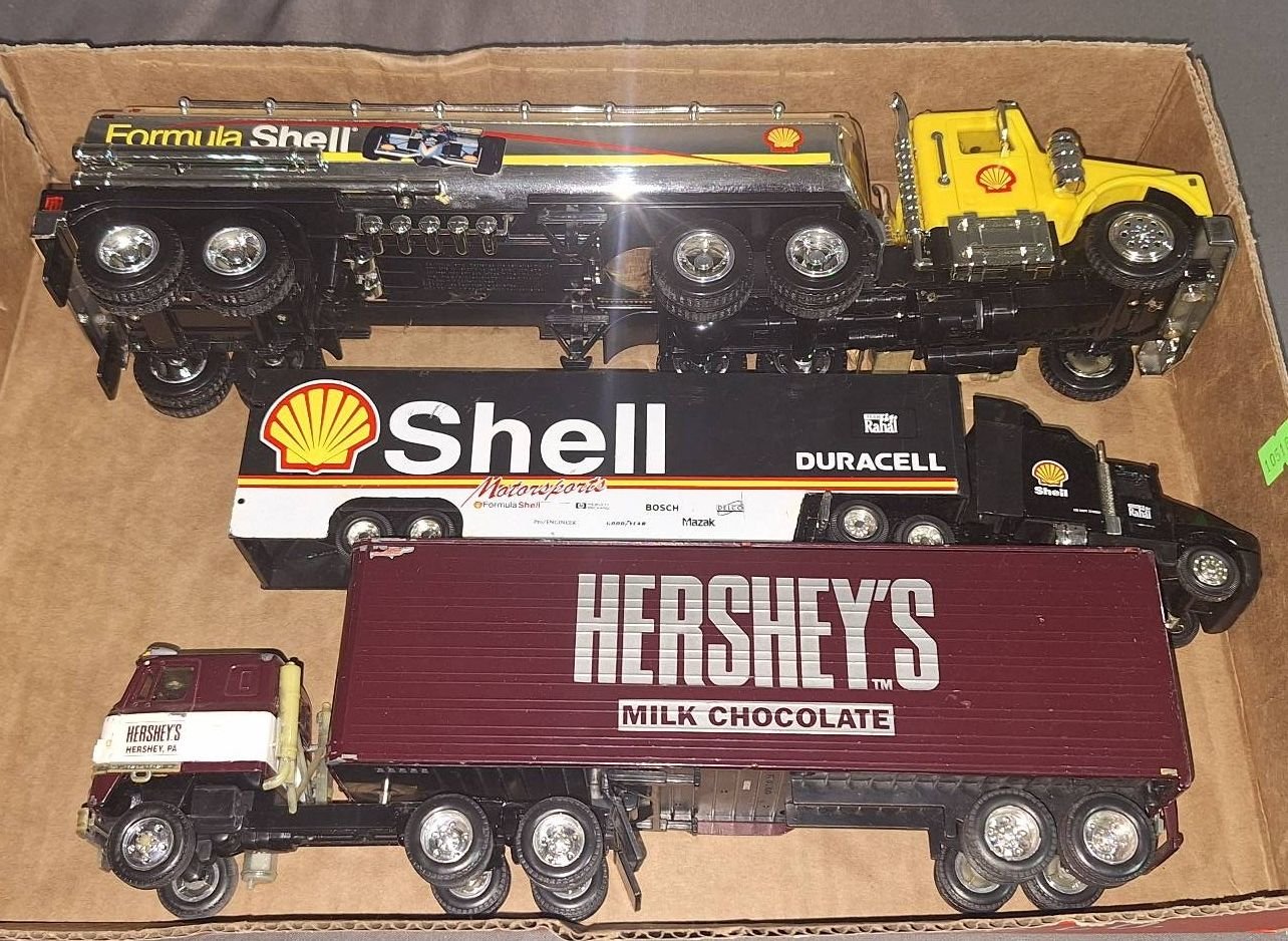 Huge Toy Collection inc. Diecast Cars, Semis, Trucks, Farm Toys, Pedal Tractors, Dragsters, Farm Implements & Shop Tools, Planes, Trains • Advertising inc. Petroliana