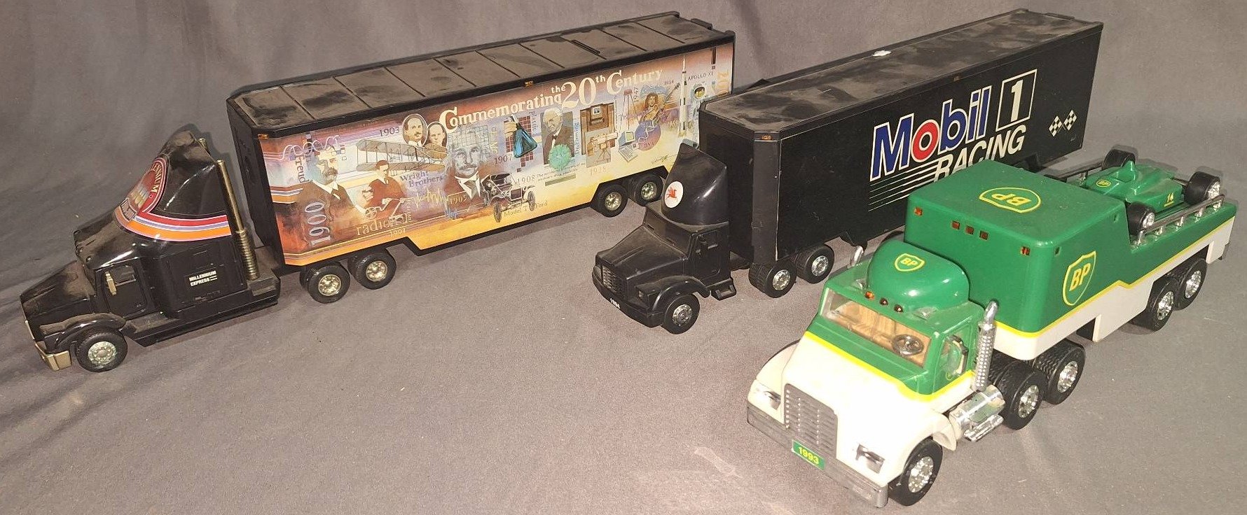 10639 Plastic Toy Semi-Trucks With Trailers, Mobil 1 Racing and BP Designs