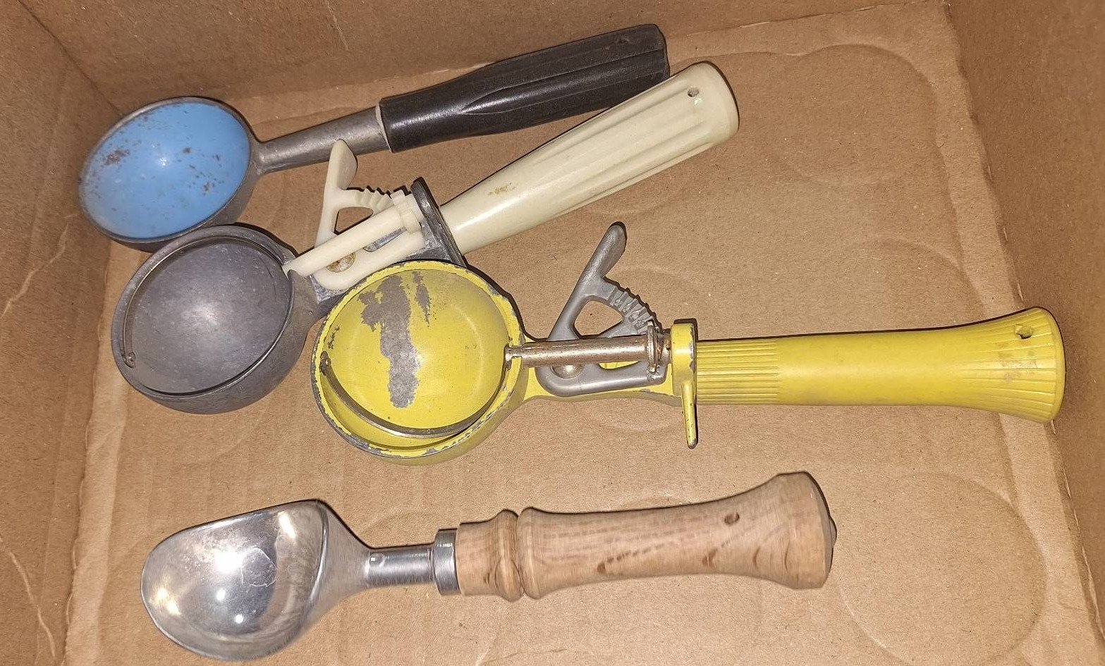 10674 4 Assorted Ice Cream Scoops with Metal Bowls and Mixed Handles