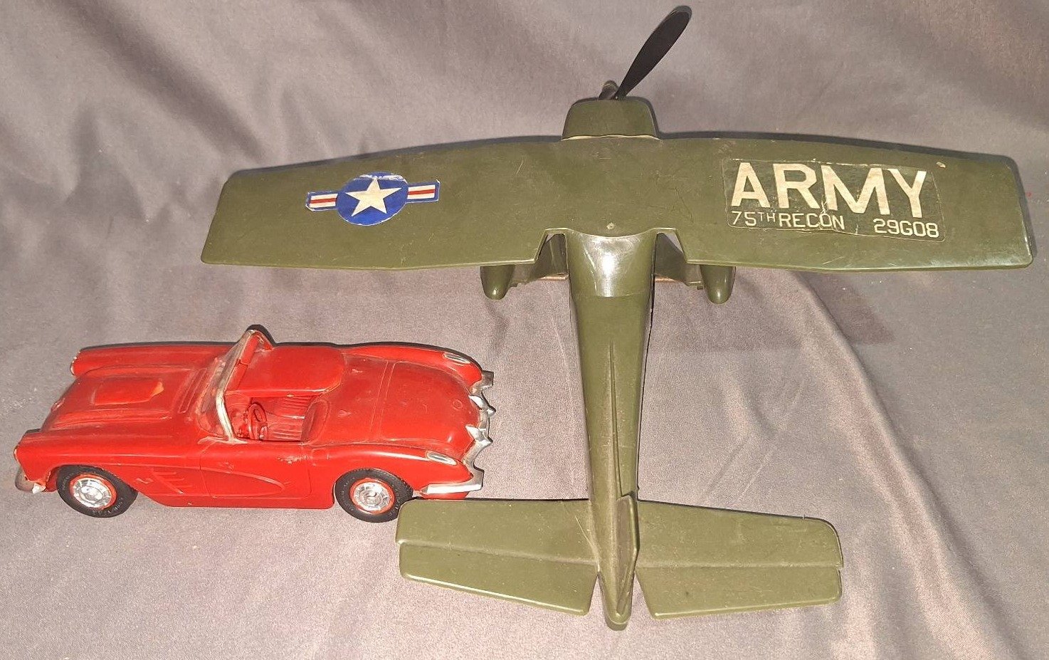 10679 Plastic Army Airplane and Red Convertible Car Models by Gay Toys Inc.