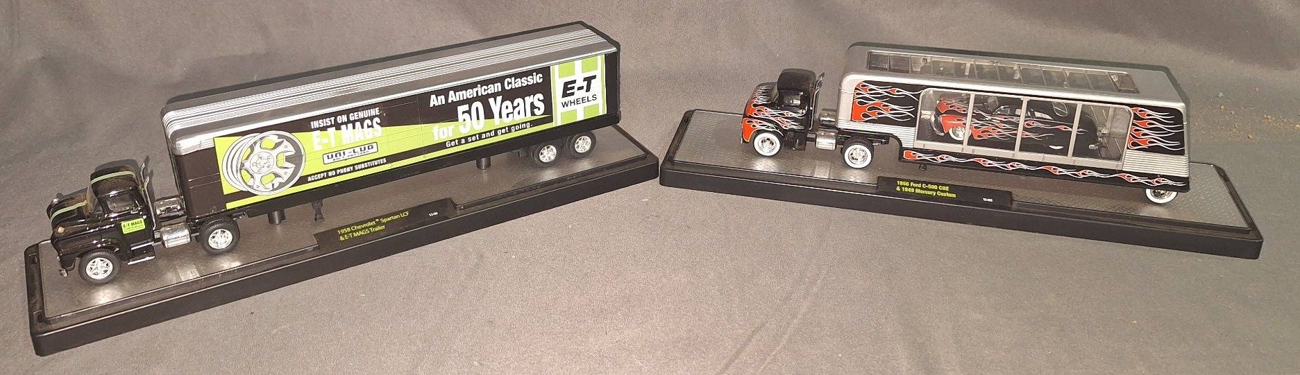 10687 1/64 Scale Die-Cast Models: 1958 Chevrolet Spartan LCF Trailer and 1956 Ford C-500 COE with 1949 Mercury Custom