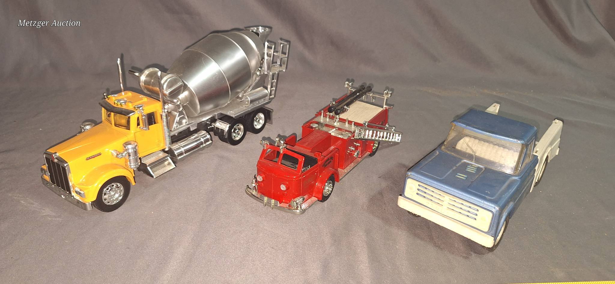 10697 3 Die-Cast Toy Vehicles Inc. Cement Mixer, Firetruck & Pickup Truck