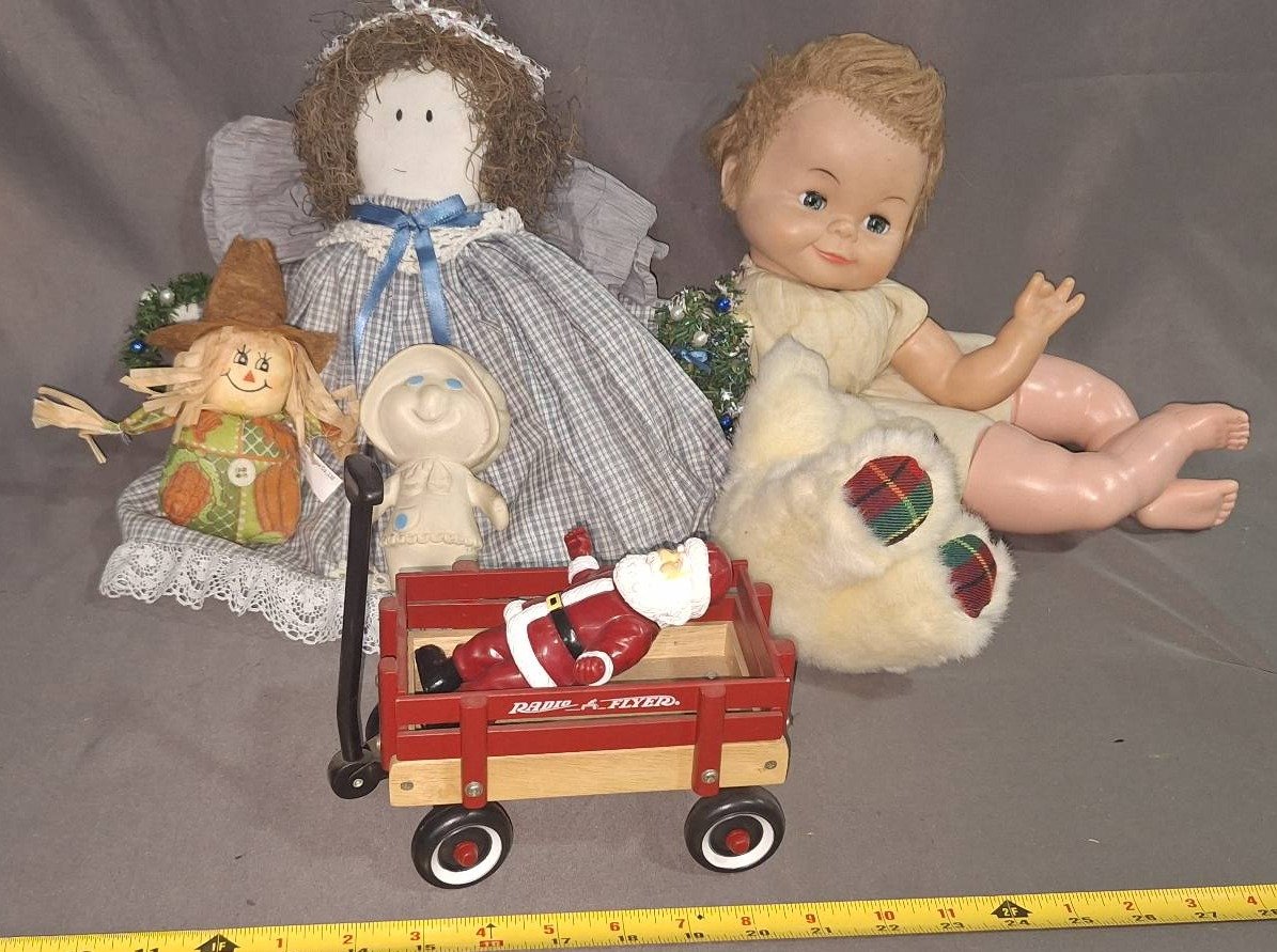 10709 Dolls and Miniature Wagon with Santa Figurine