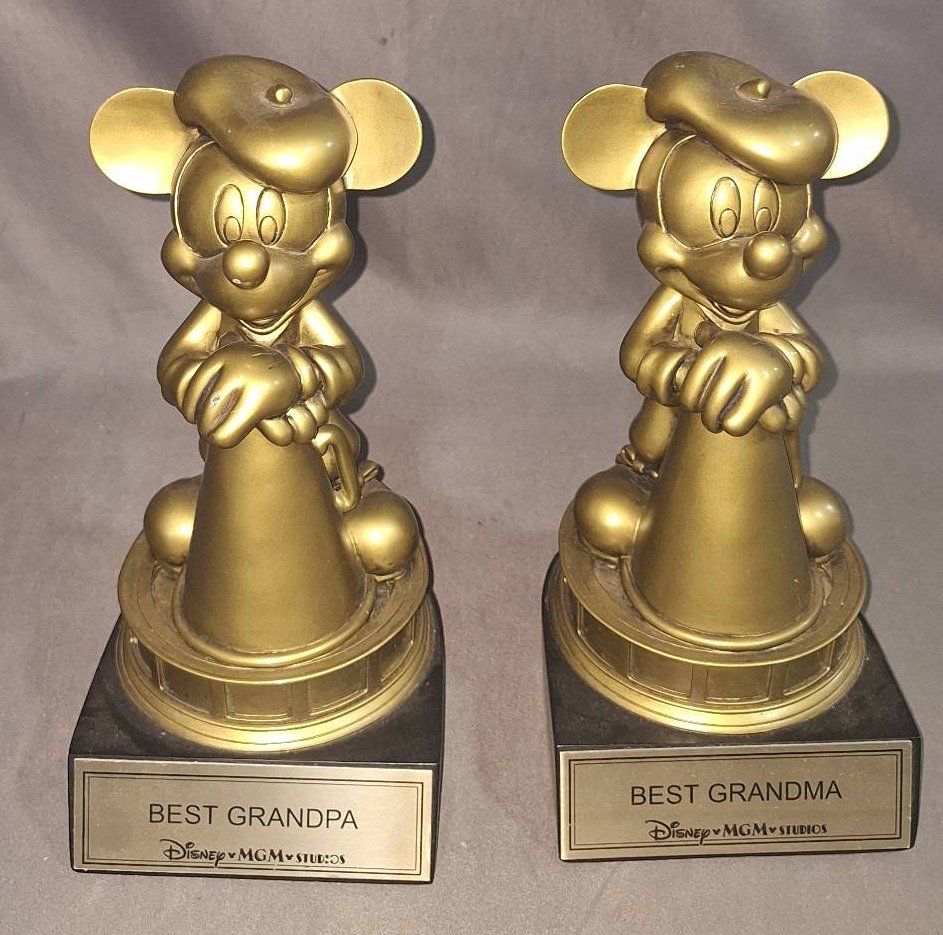 10712 Gold-Tone Disney-MGM Studios ‘Best Grandma’ and ‘Best Grandpa’ Figurines, 10in