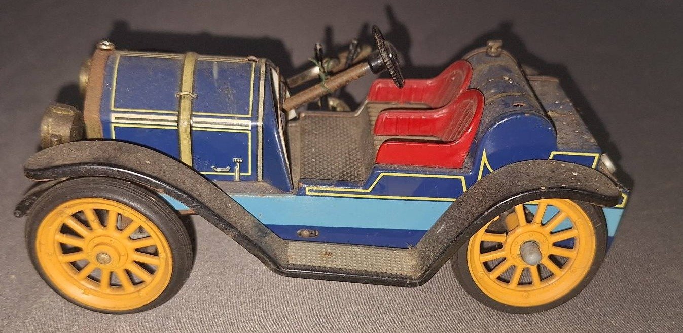 10713 Schuco Key Wind Tin Toy Car with Blue and Red Detailing