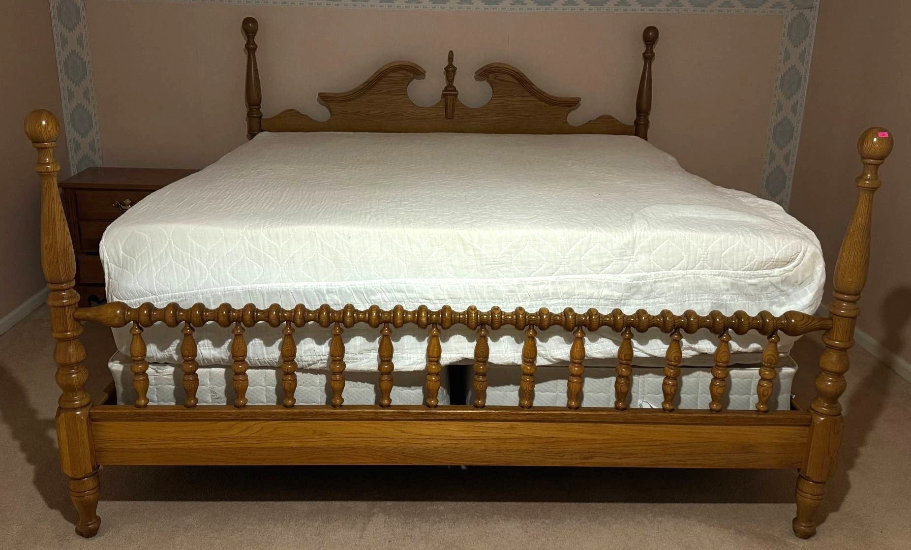 100 Oak Bed Frame with Headboard, Footboard, Sealy Posturepedic Mattress, 2 Box Springs, and Mattress Topper