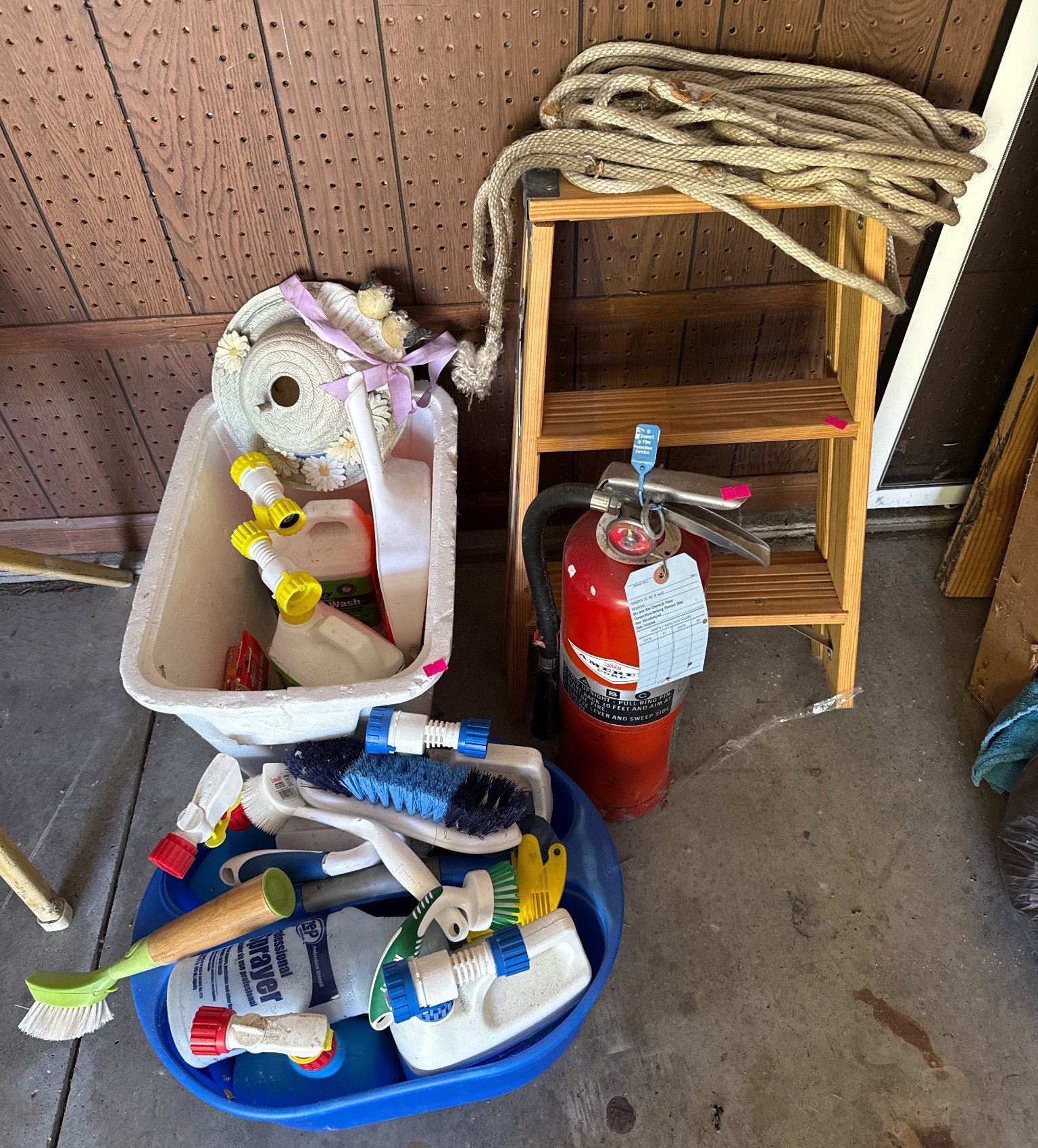 1008 Utility Items Lot Inc. Rope, Fire Extinguisher, Ladder, and Cleaning Supplies