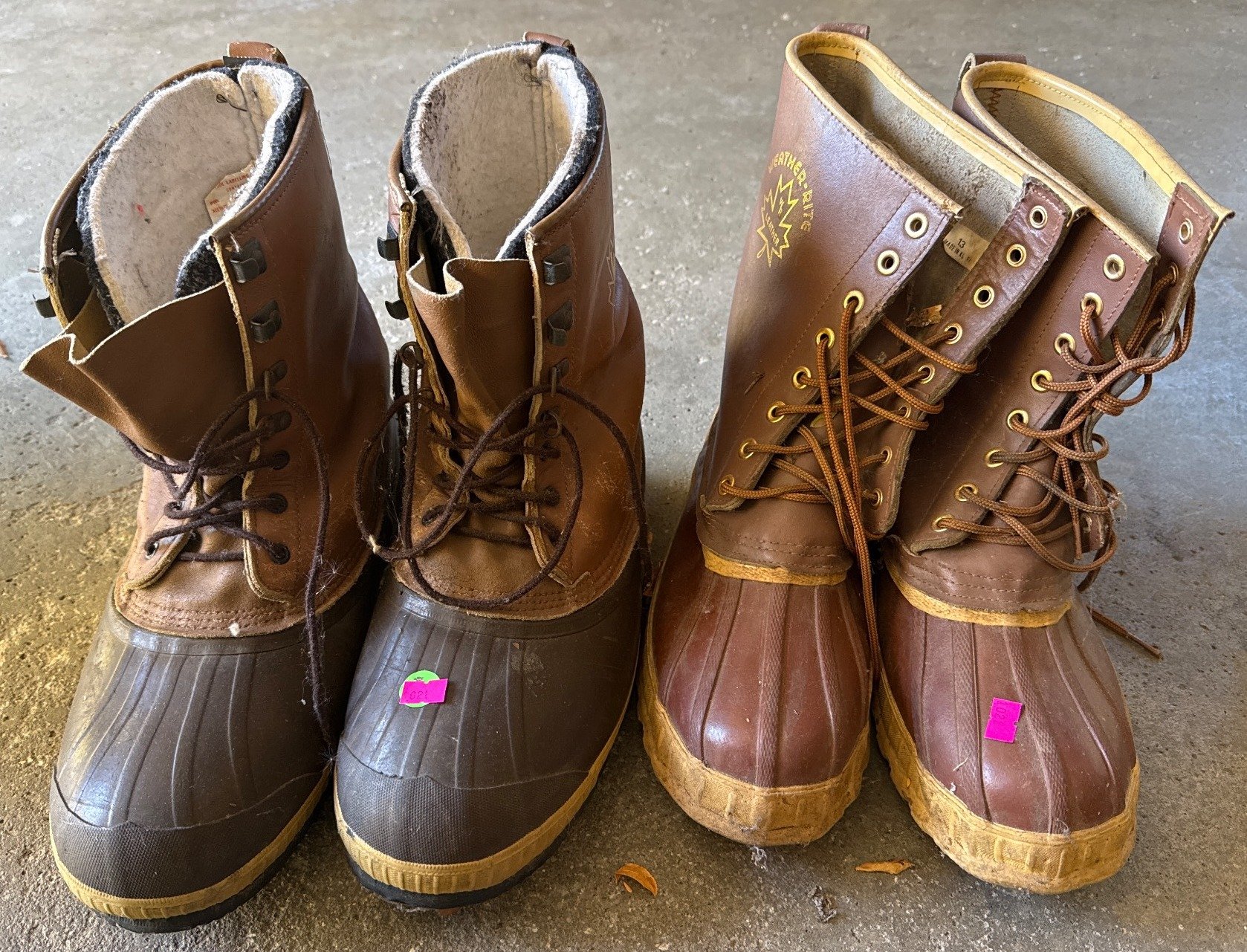 1021 2 Pairs of Size 13 Men’s Duck Boots Featuring Weather-Rite Leather