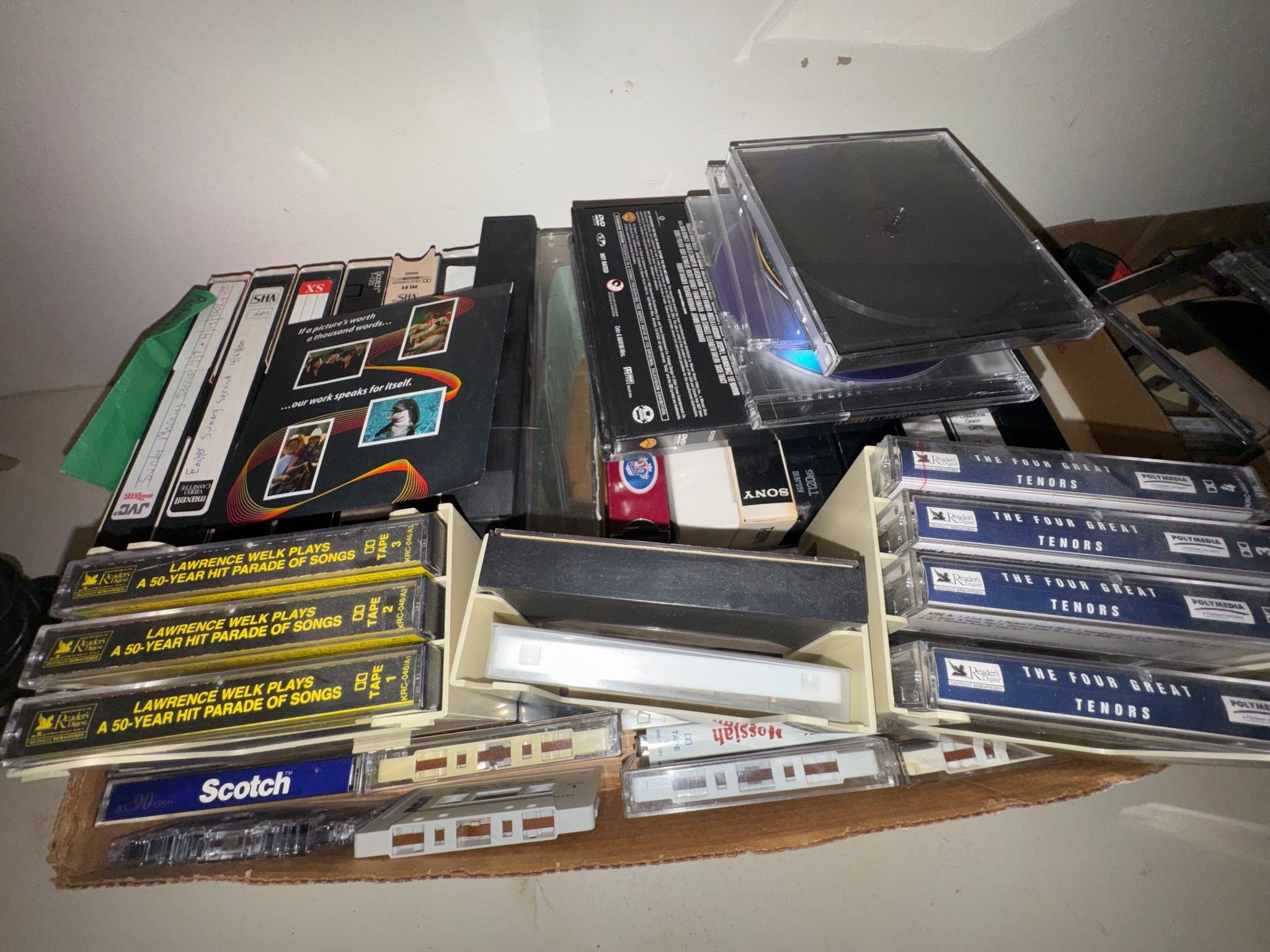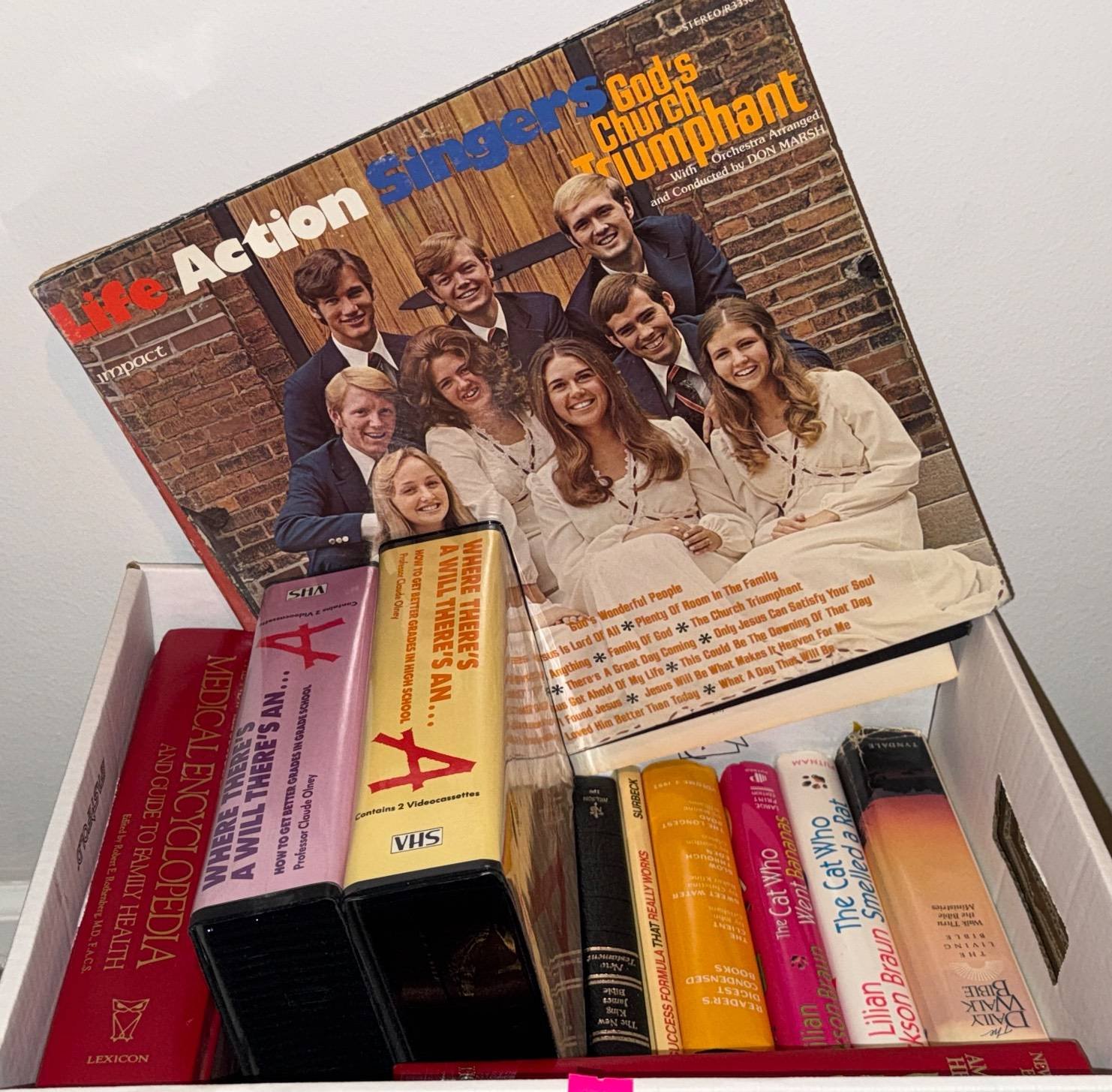 103 Books, Hymnal, Vinyl Record, and VHS Tapes