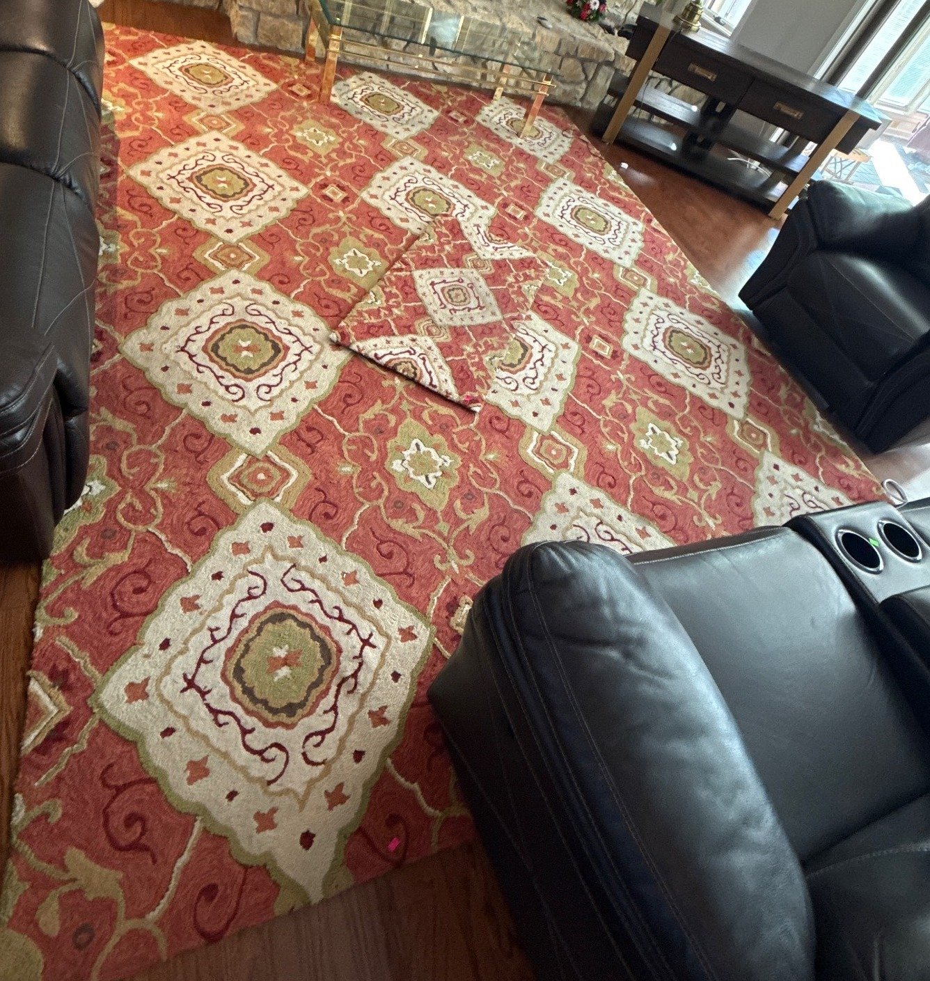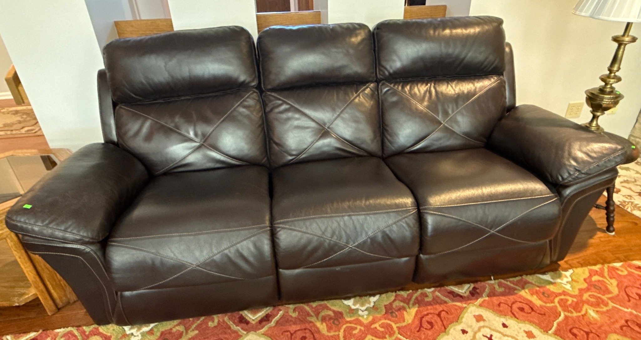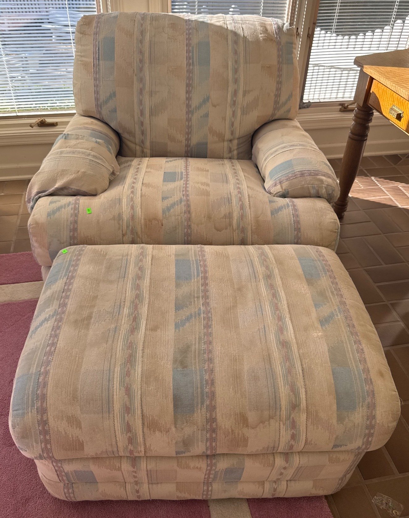 108 Red Upholstered Recliner With (2) Crochet Blankets