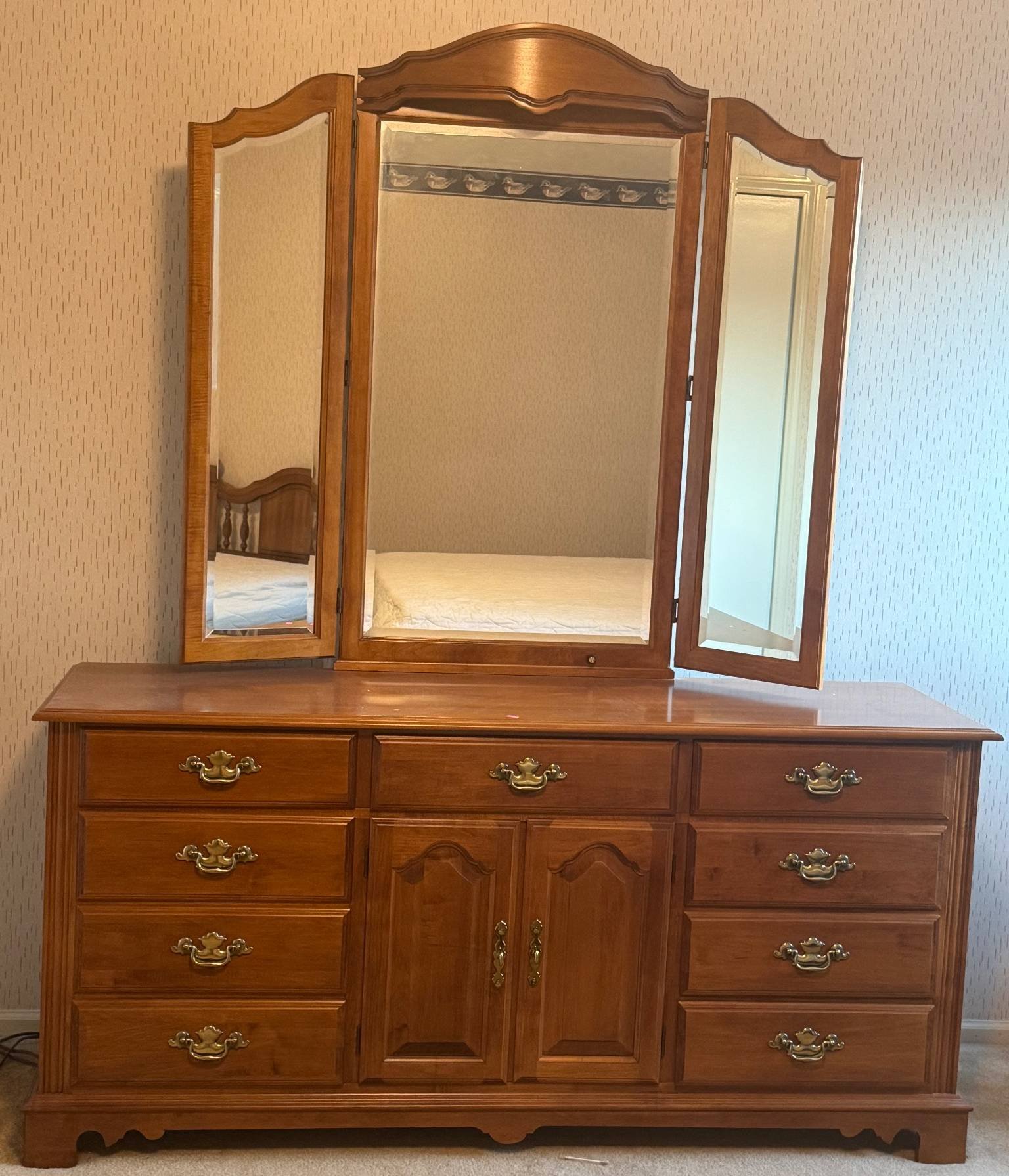 111 Tell City Inc. Dresser with Tri-Fold Mirror and Brass Handles