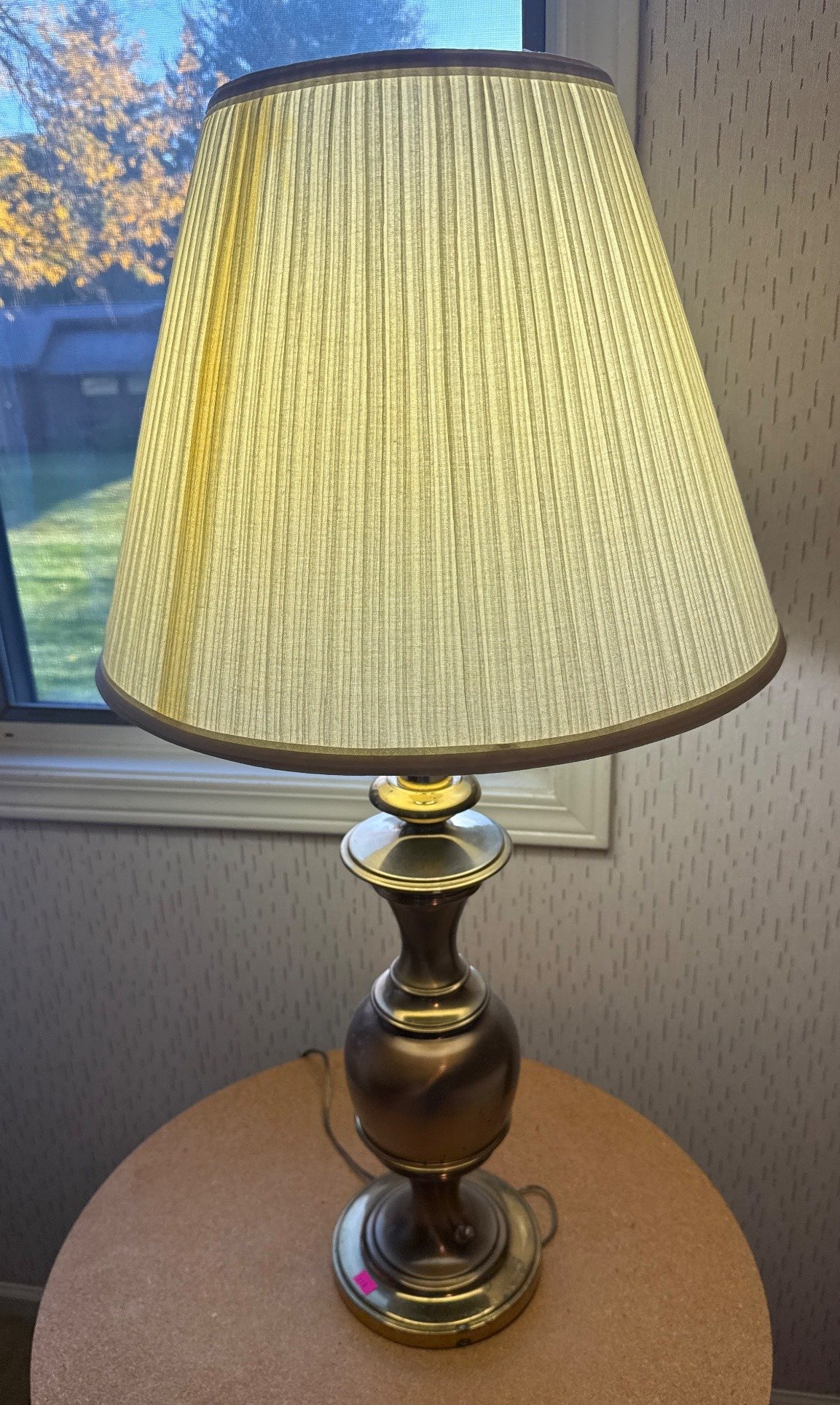 113 Brass Table Lamp with Pleated Fabric Shade