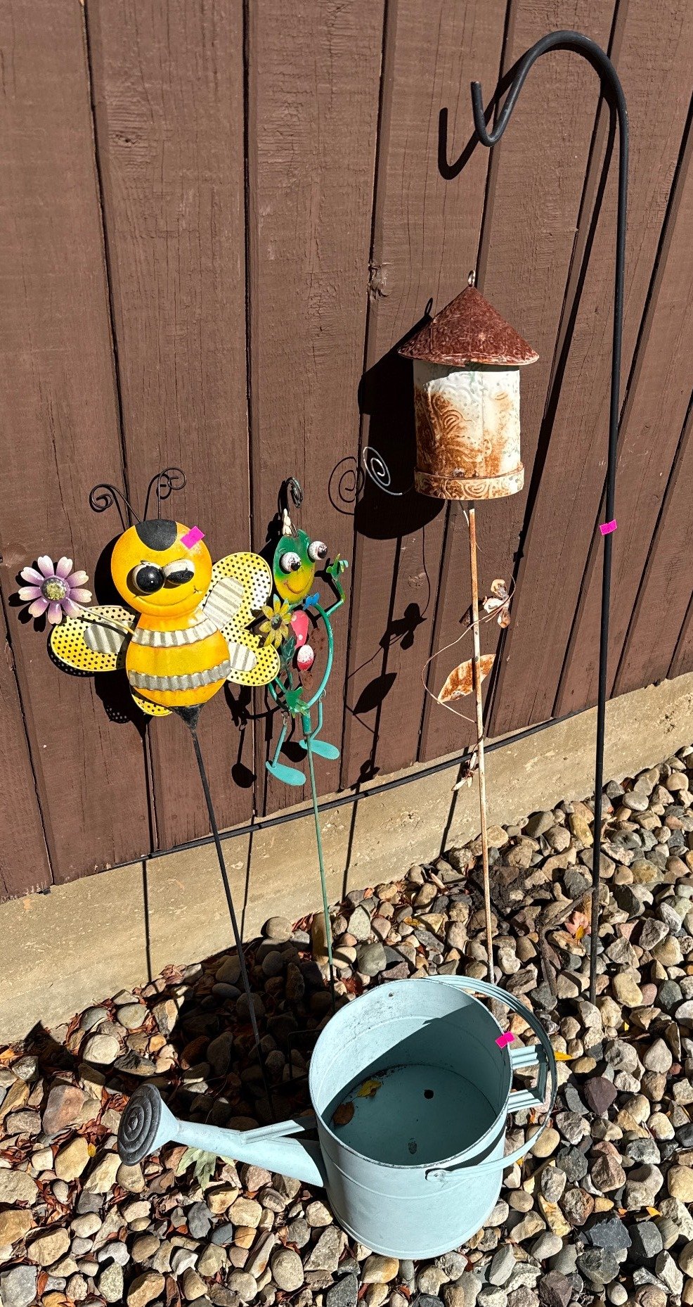 2003 Metal Watering Can and Garden Ornaments with Metal Shepherd’s Hook