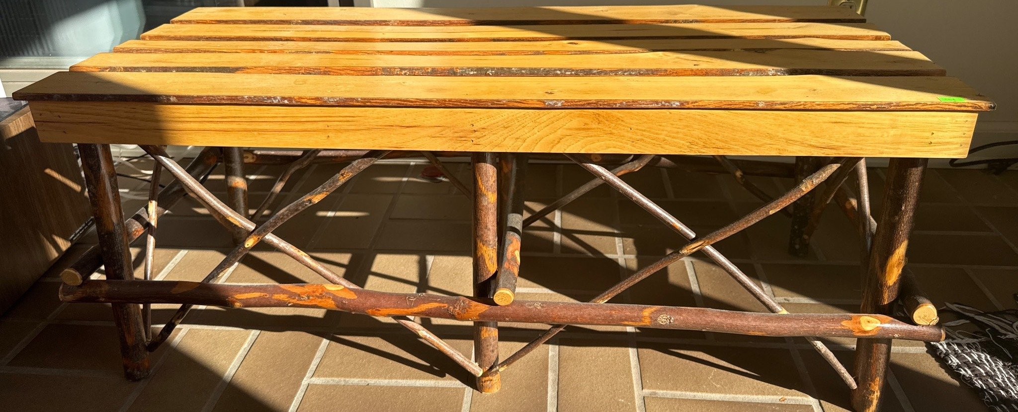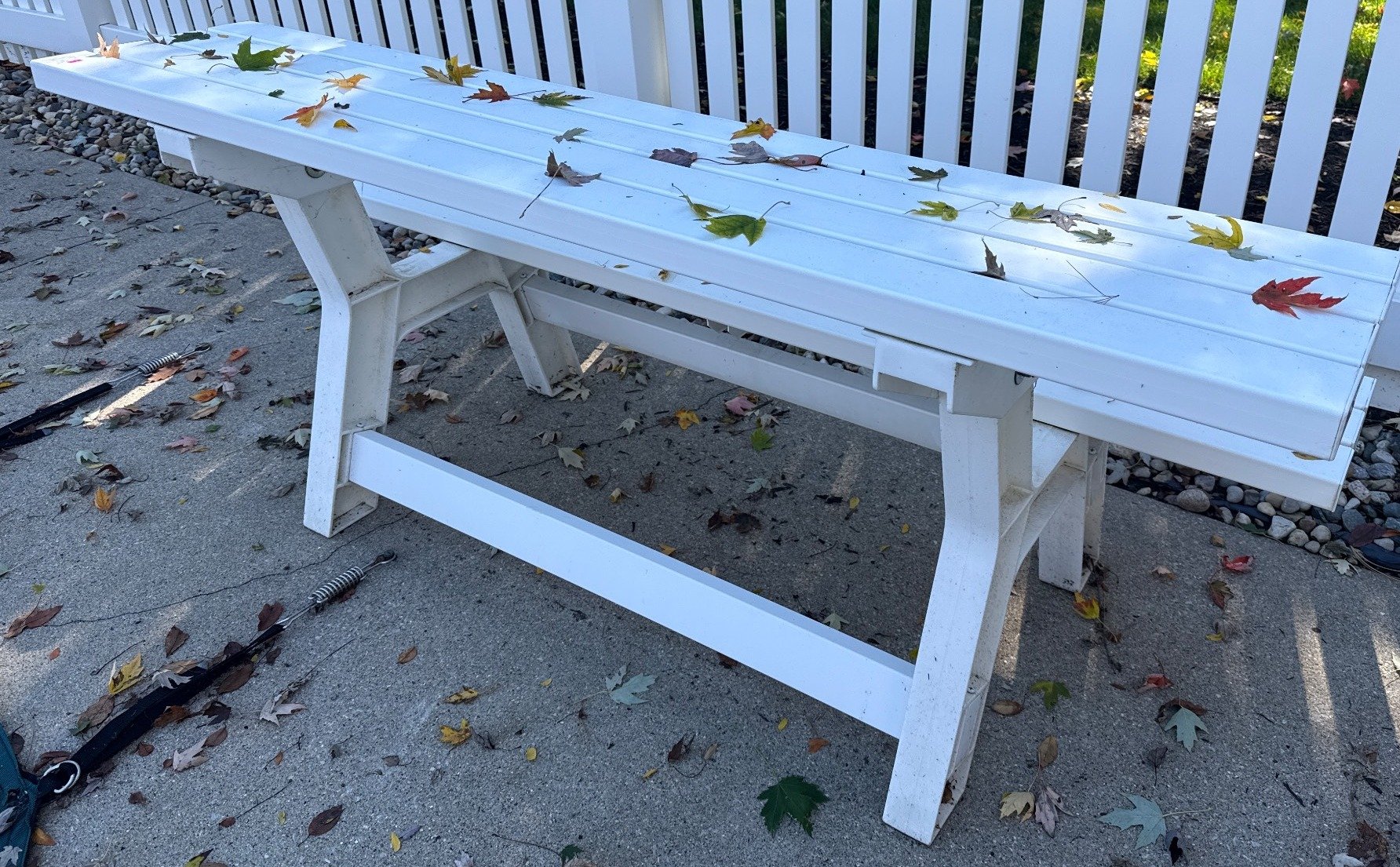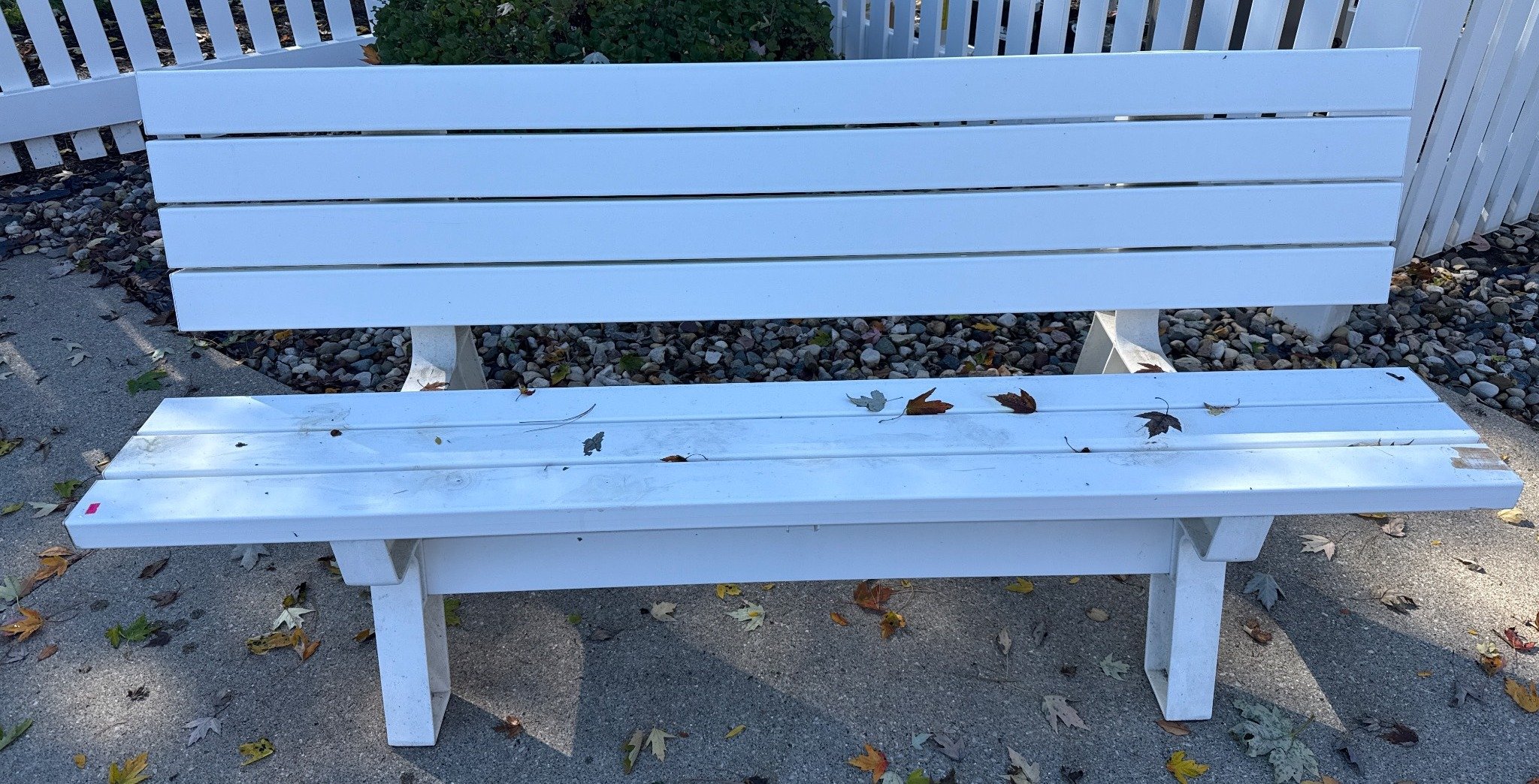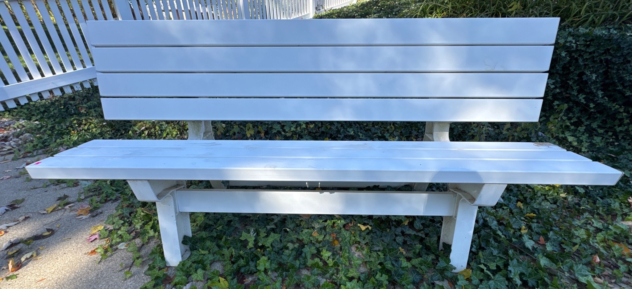 2006 White Outdoor Bench with Slatted Design