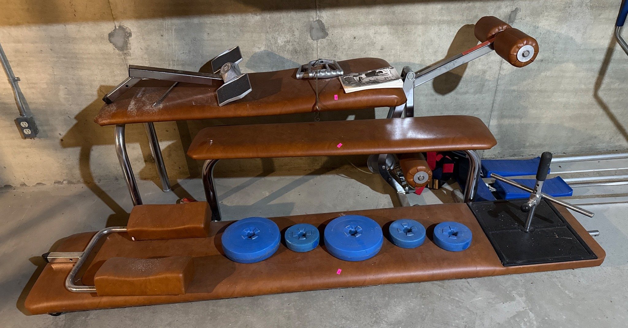 201 Adjustable Weight Bench with Blue Weight Plates and Accessories