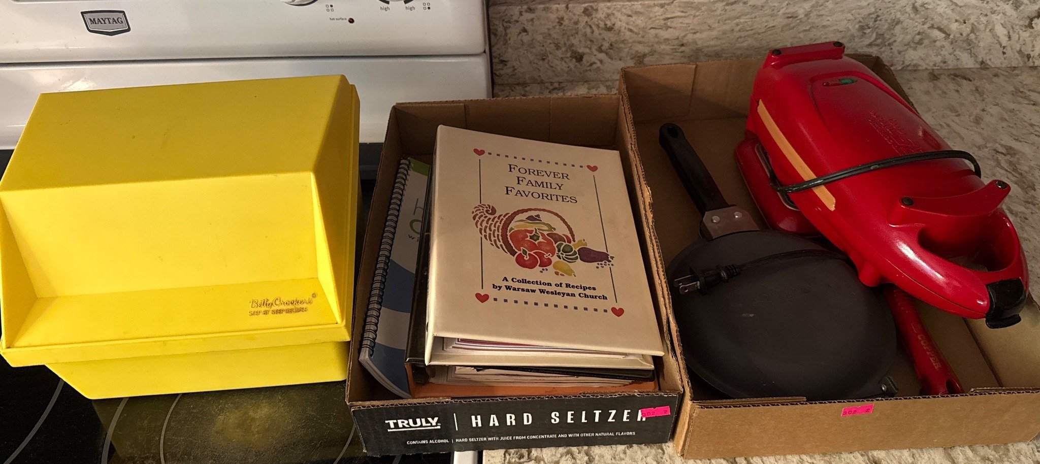 302 Kitchen Items Inc. Recipe Organizer, Cookbooks, Waffle Maker, and Frying Pan