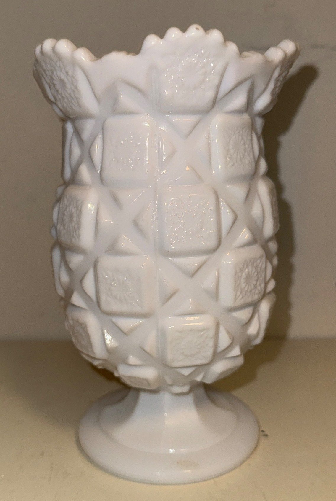 308 White Milk Glass Vase with Embossed Pattern, 6”