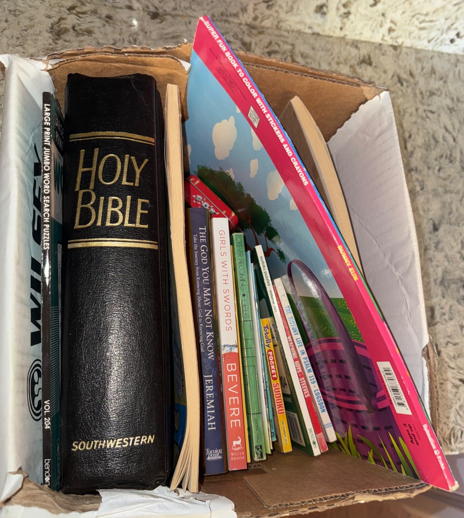 309 Box with Various Religious and Children’s Books and a Drawing Pad
