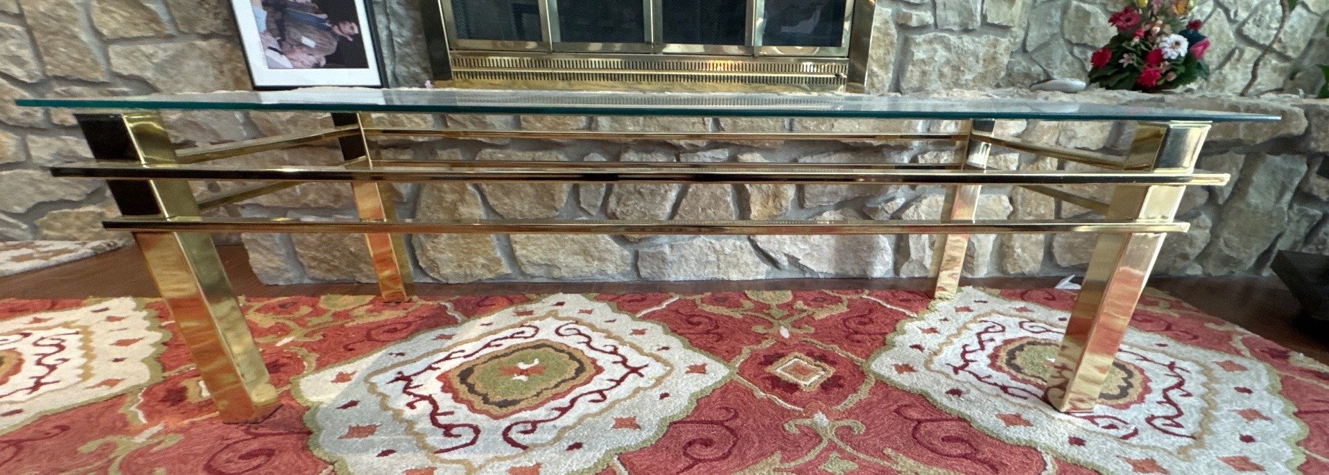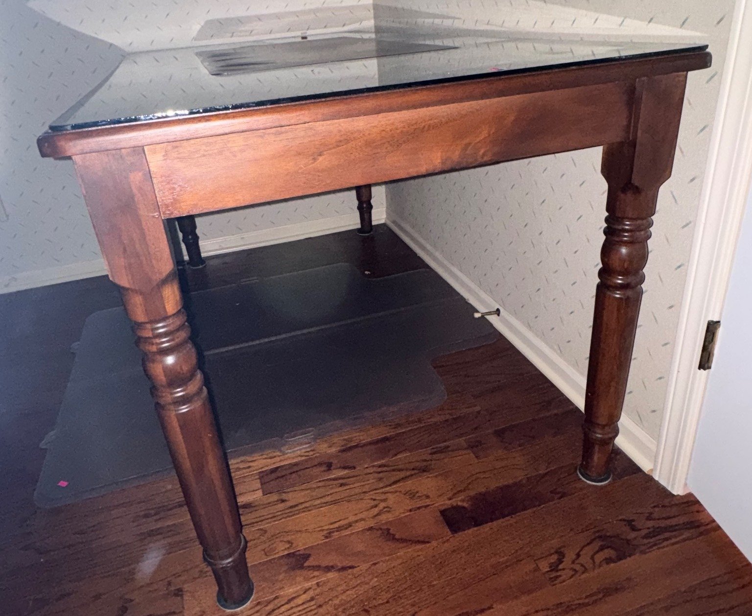 718 Rectangular Table With Glass Top and Turned Legs