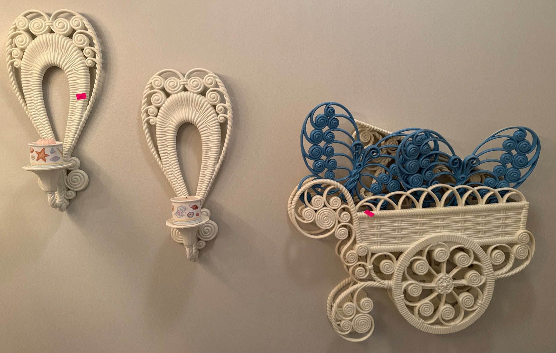 610 Wicker Wall Hanging Pair with Candle Holders and Decorative Cart