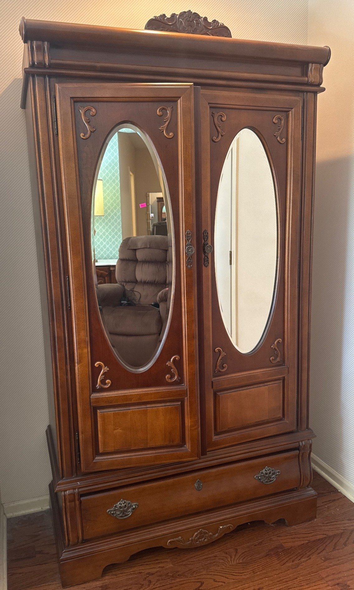 801 Armoire with Mirrored Doors and Interior Shelves