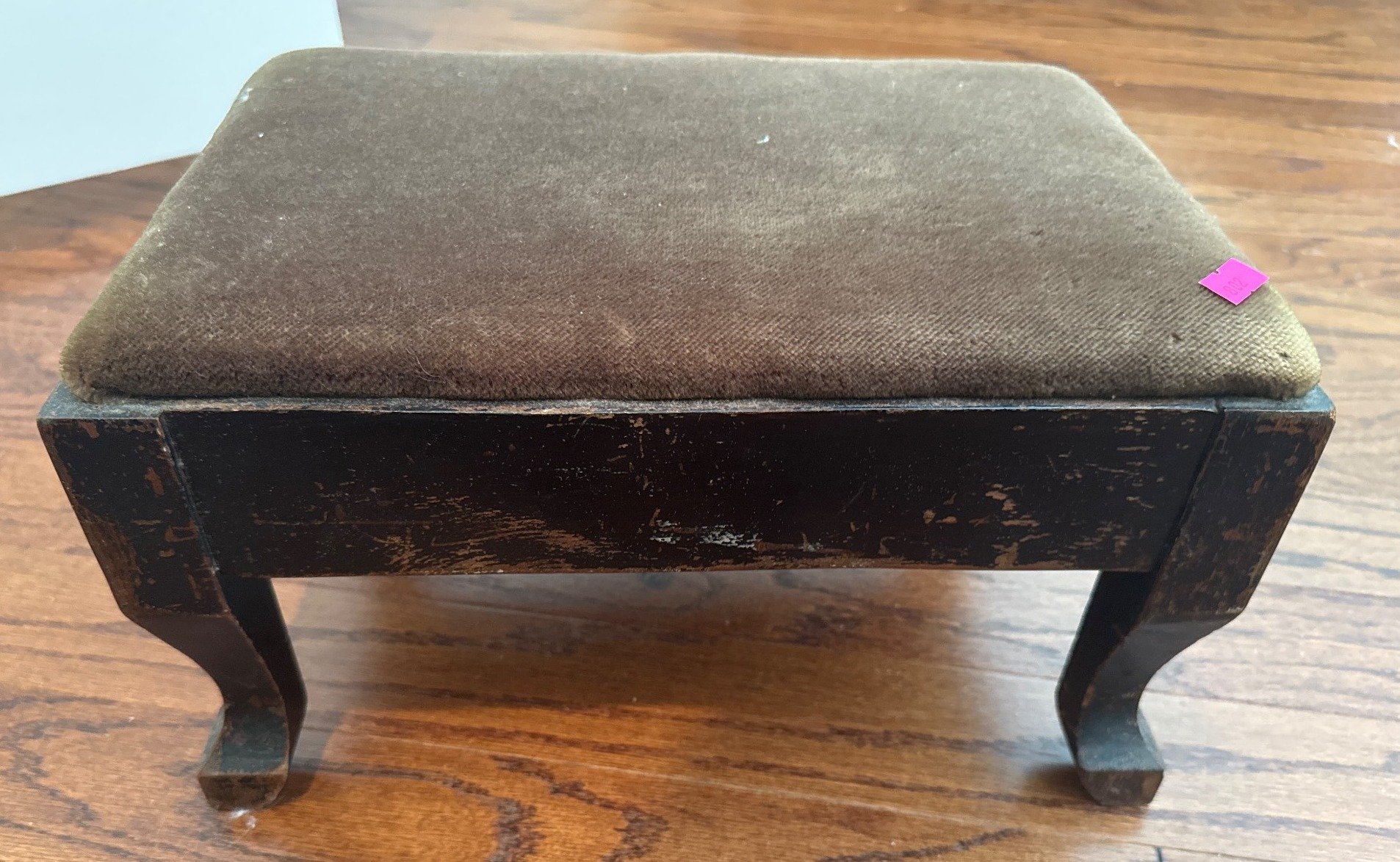 802 Upholstered Footstool with Brown Fabric and Scrolled Legs